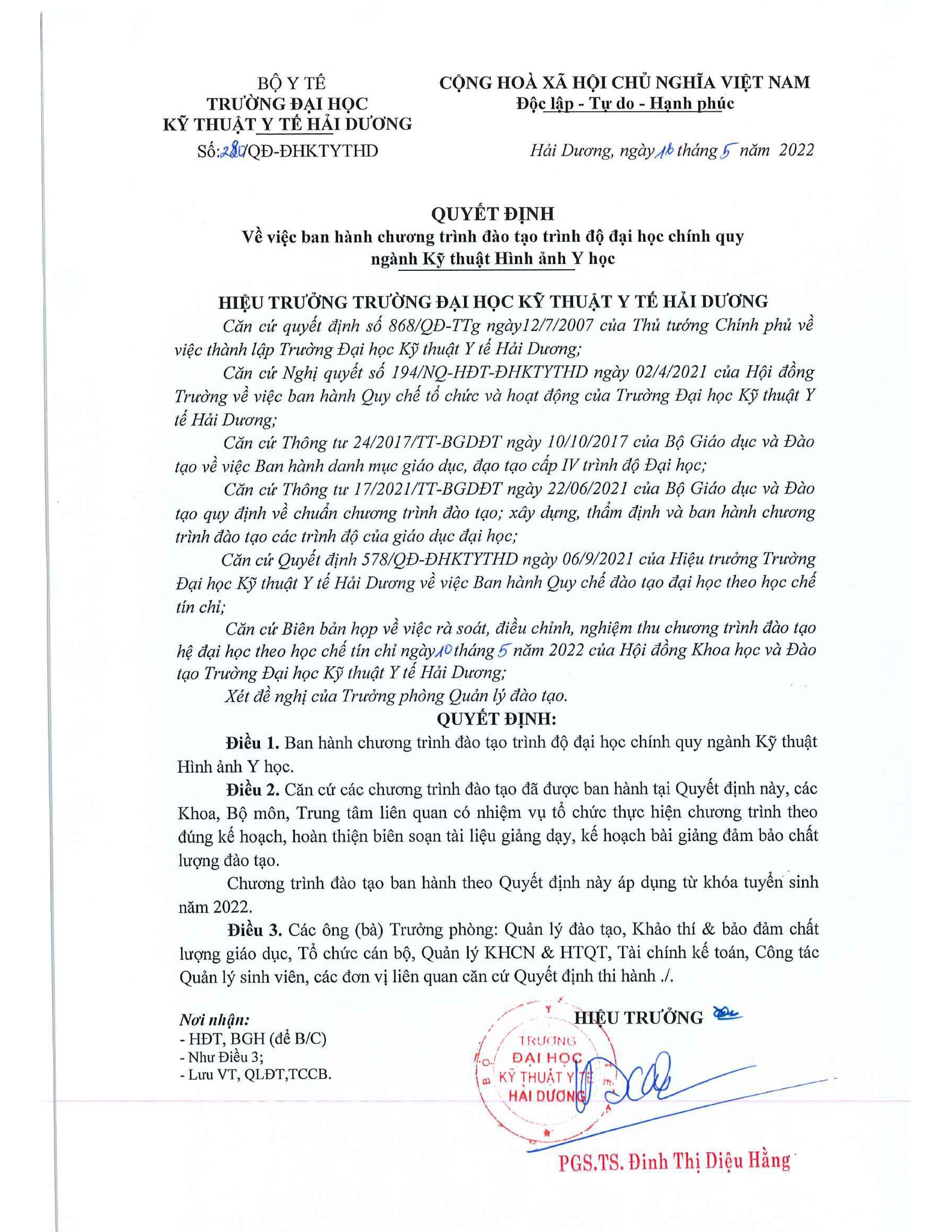 - Đơn vị cấp bằng: Trường Đại học Kỹ thuật Y tế Hải Dương