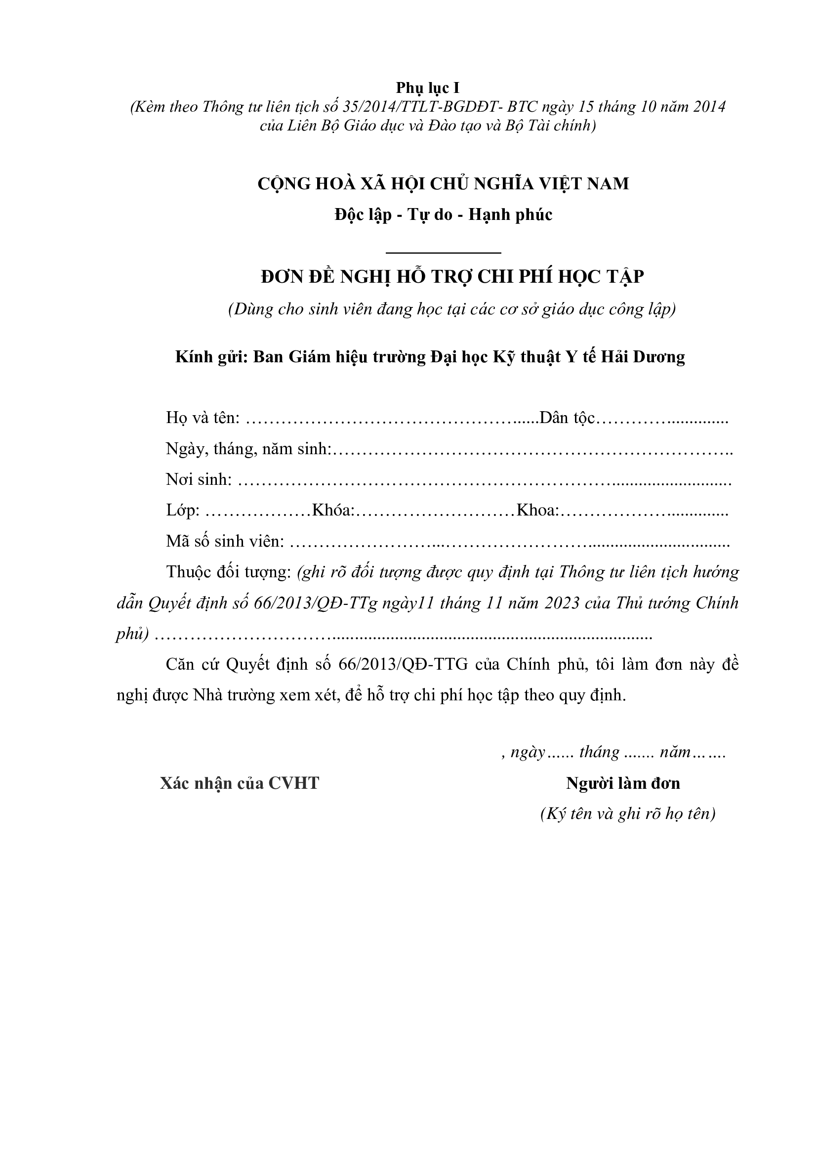 2025. ĐƠN XIN HỖ TRỢ CHI PHÍ HỌC TẬP
