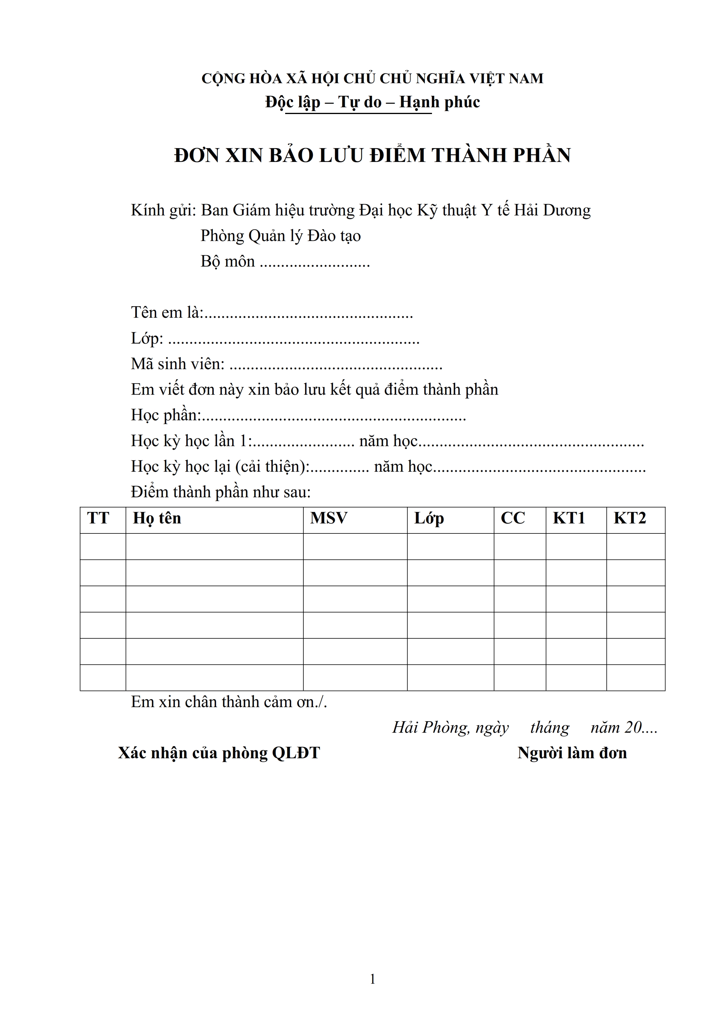 Hãy Click vào đây để tải mẫu đơn xin bảo lưu điểm thành phần !