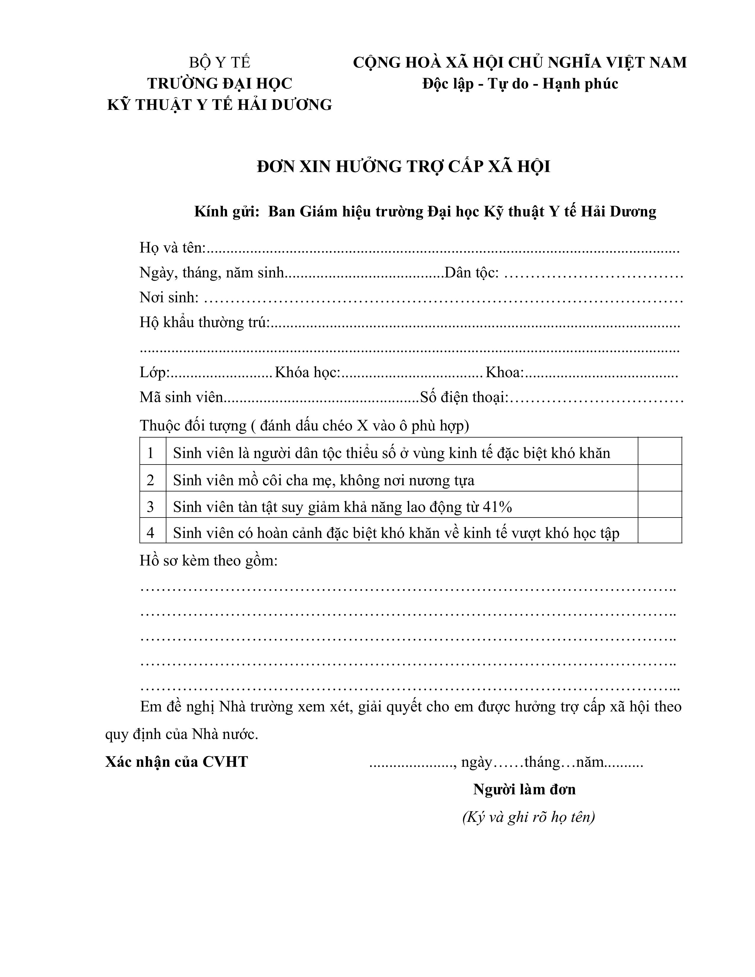 Biểu mẫu "Đơn xin hưởng trợ cấp xã hội"