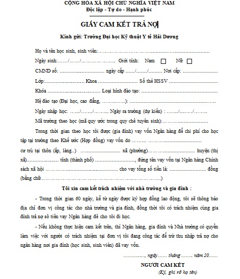 Biểu mẫu "Giấy cam kết trả nợ"