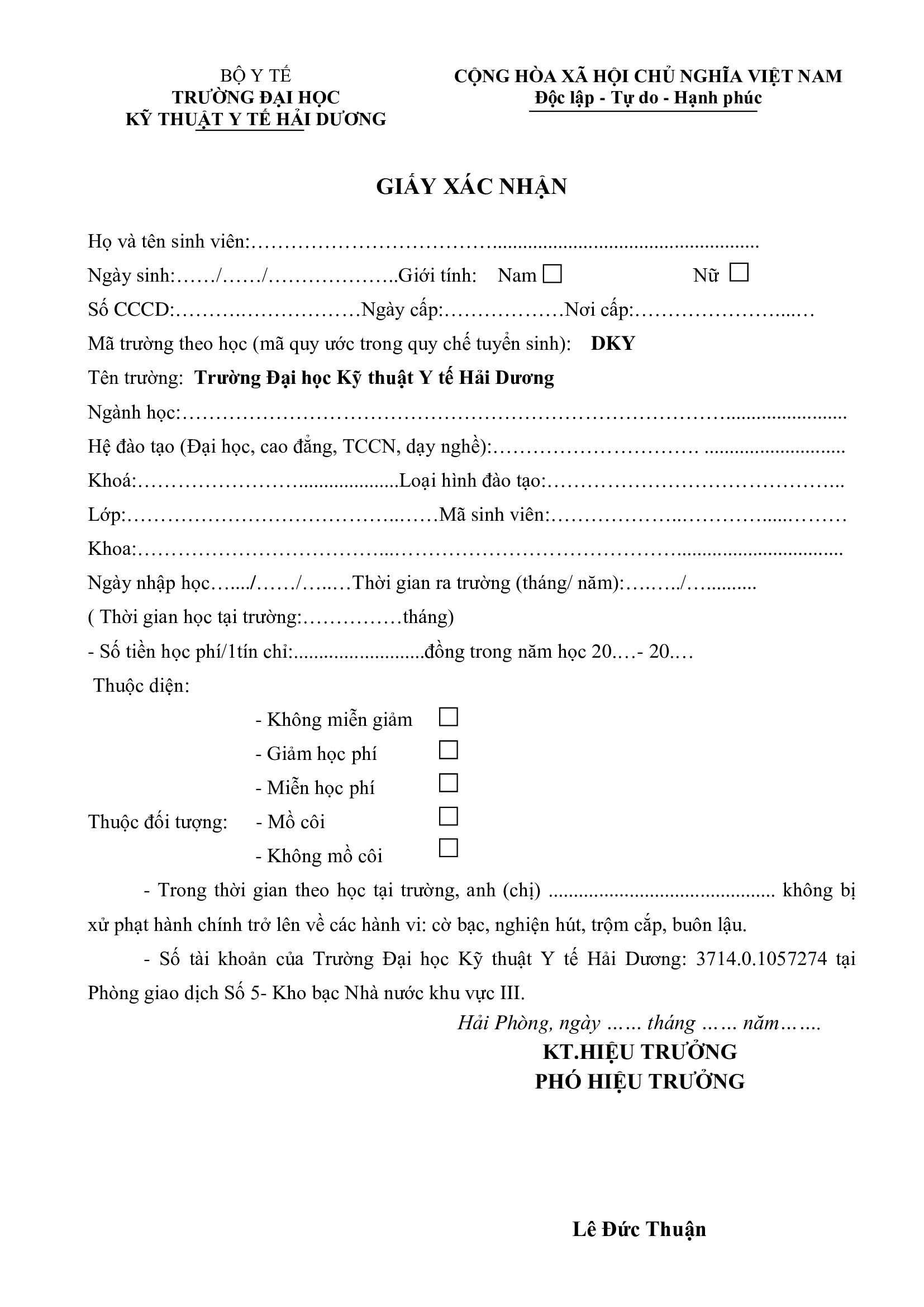 Biểu mẫu "Xác nhận vay vốn sinh viên"