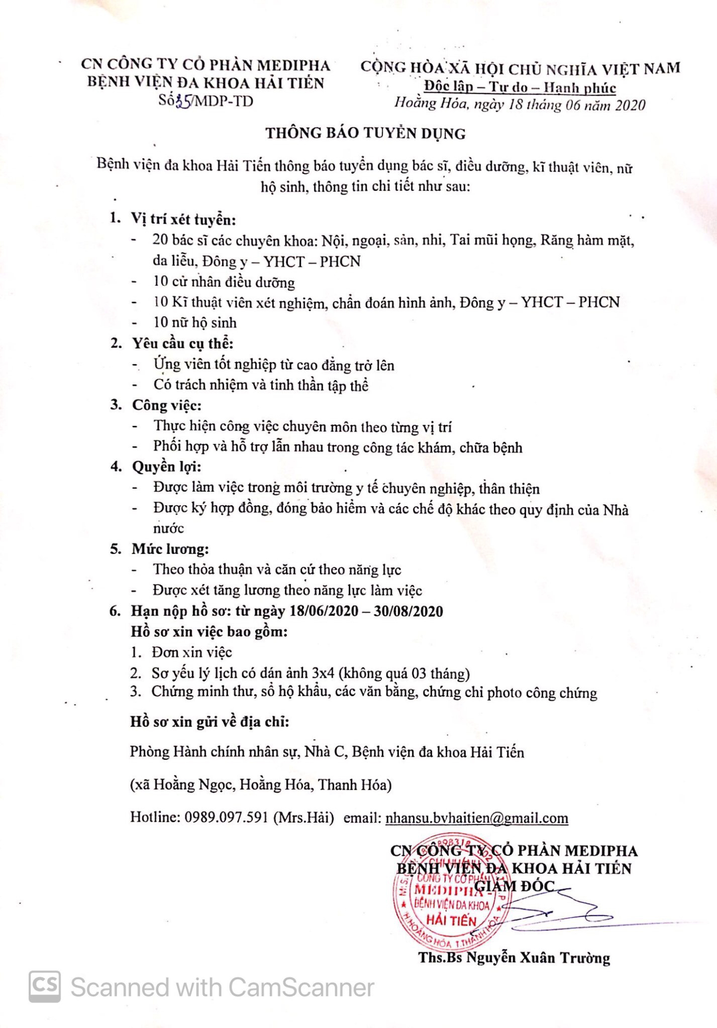 Bệnh viện đa khoa Hải Tiến - Thanh Hóa tuyển dụng