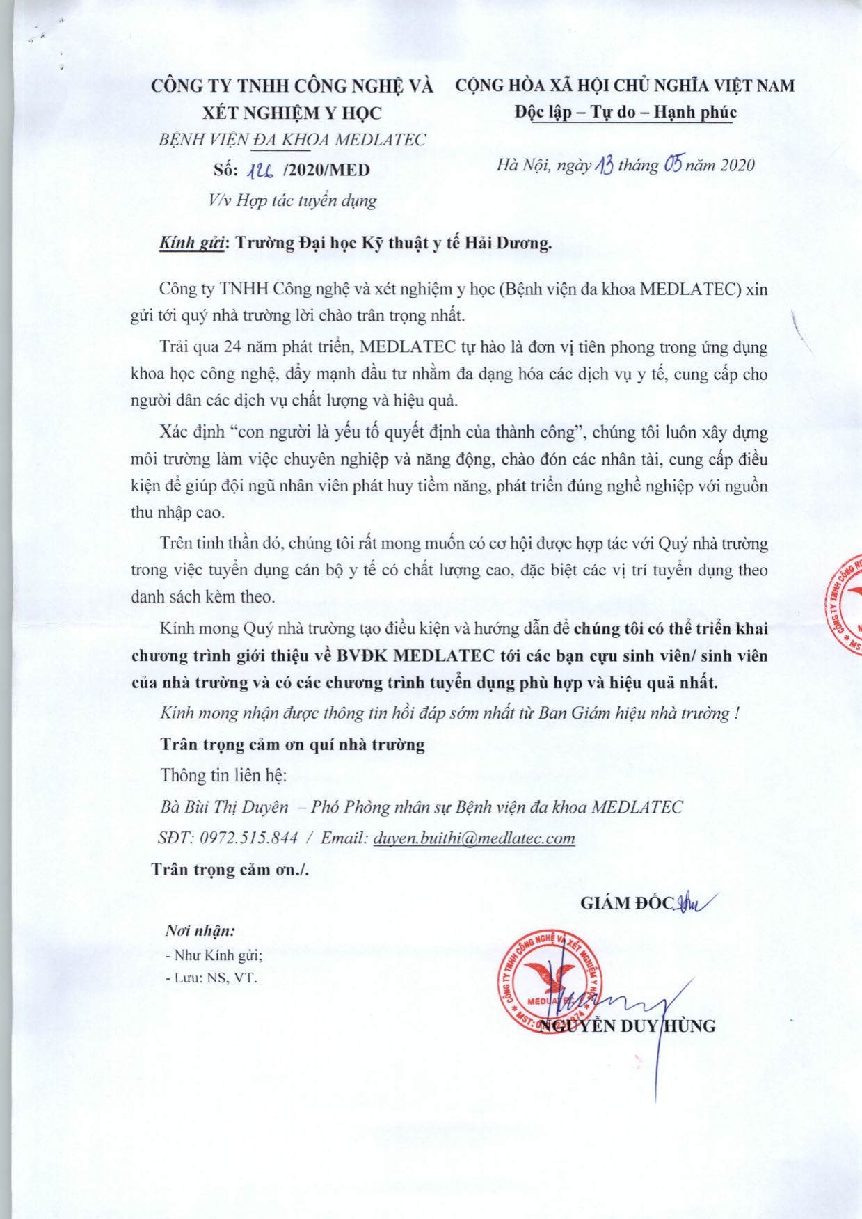 Bệnh viện đa khoa Medlatec tuyển dụng