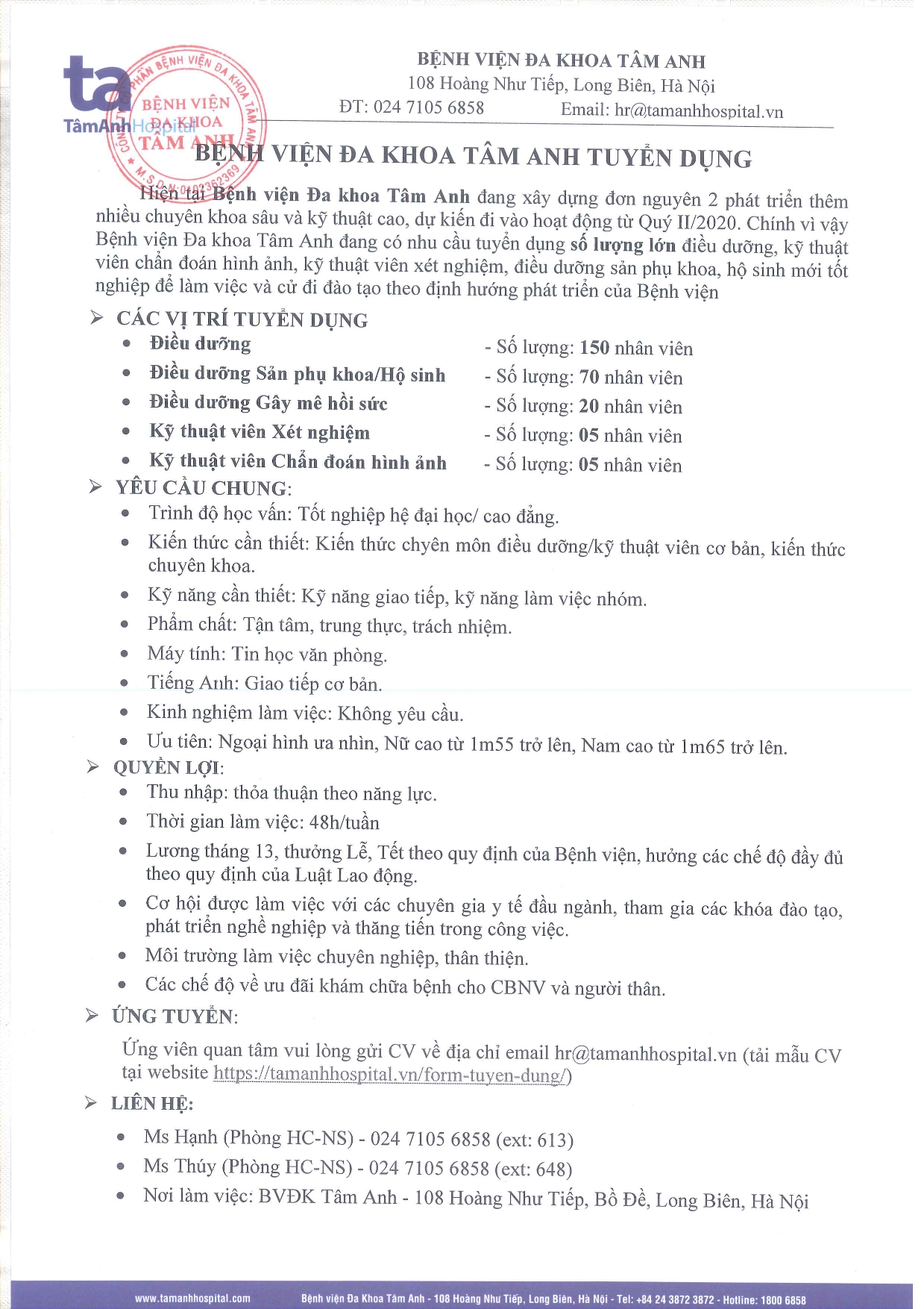 Bệnh viện đa khoa Tâm Anh tuyể dụng