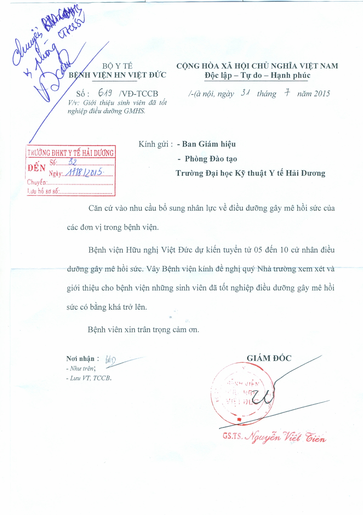 Tuyển dụng của Bệnh viện Hữu Nghị Việt Đức