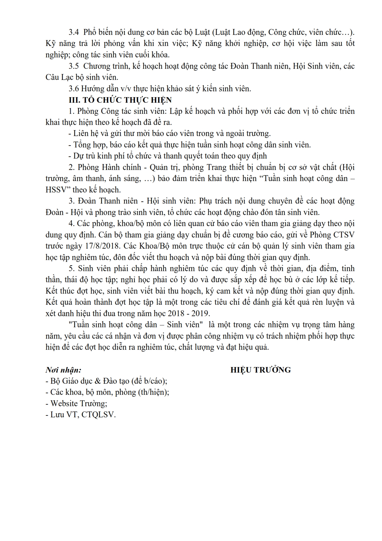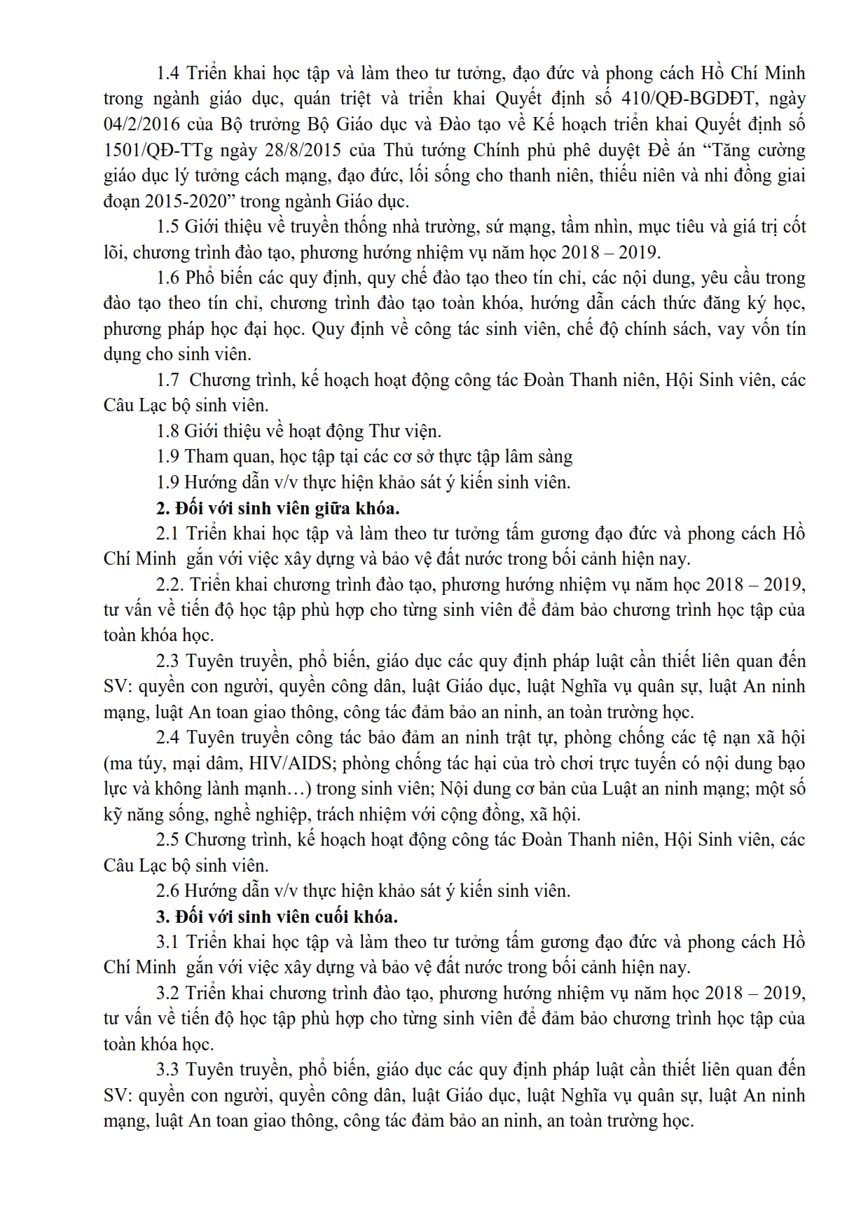 Lịch sinh hoạt công dân năm học 2018 - 2019 (SV năm 2,3,4)