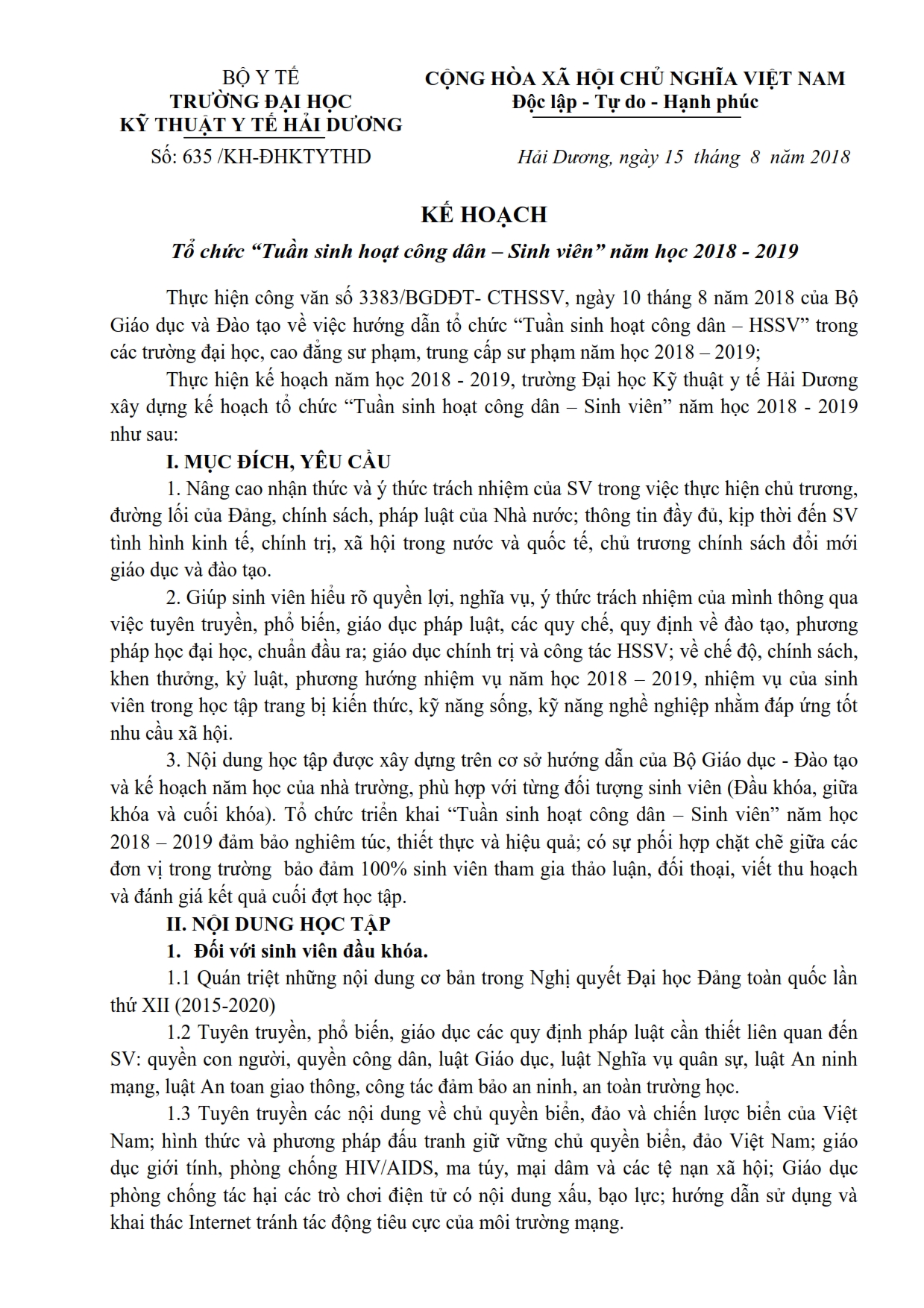 Kế hoạch sinh hoạt chính trị năm học 2018 - 2019