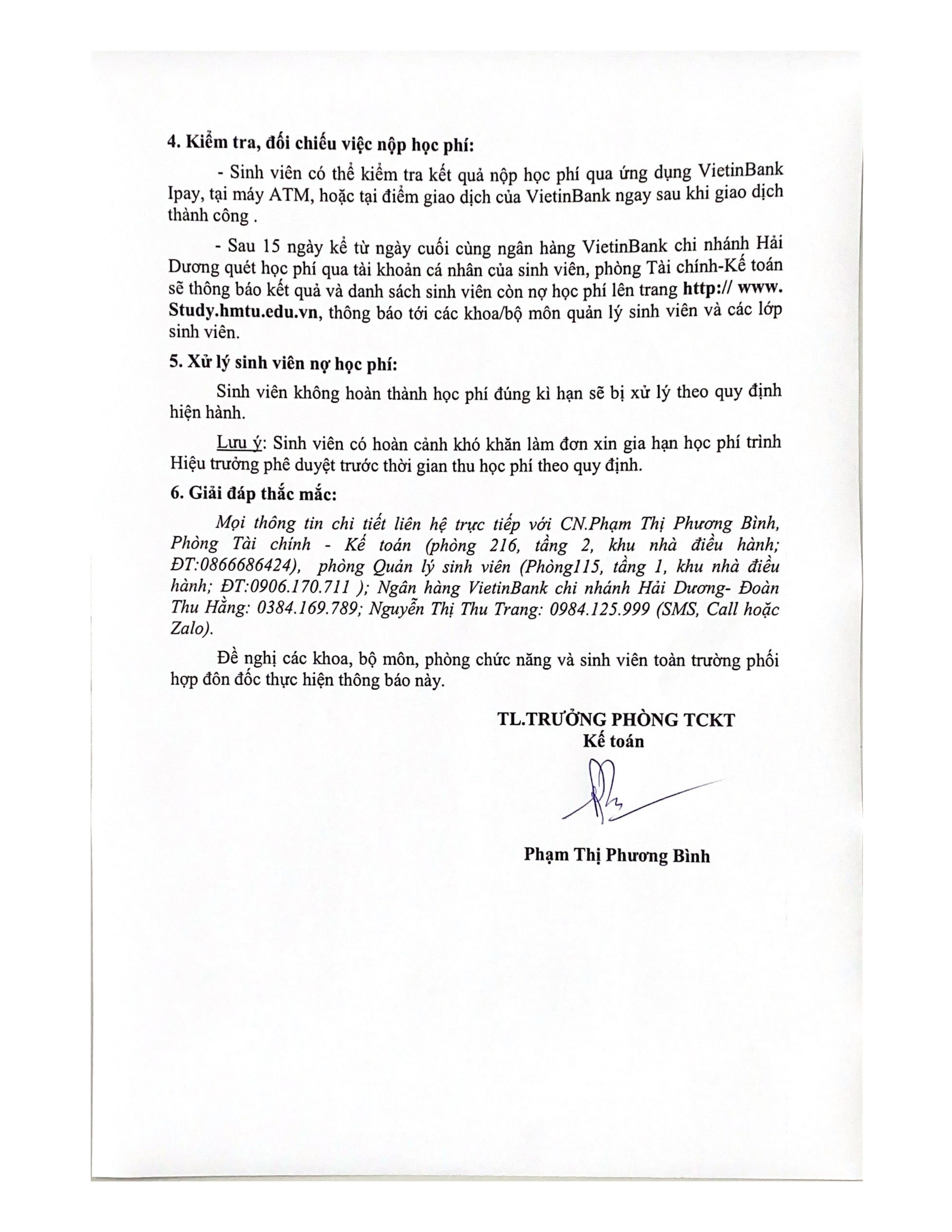 Thông báo về việc thu học phí - Kì 1 - năm học 2023-2024
