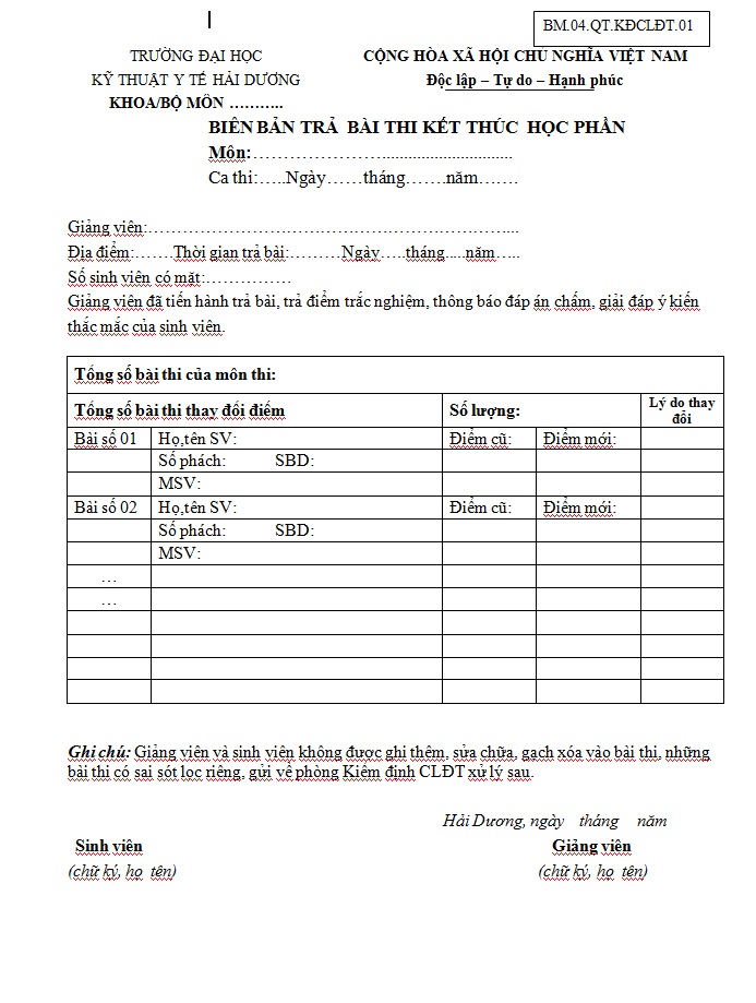 Biểu mãu "Biên bản trả bài thi" Số lượt đọc: