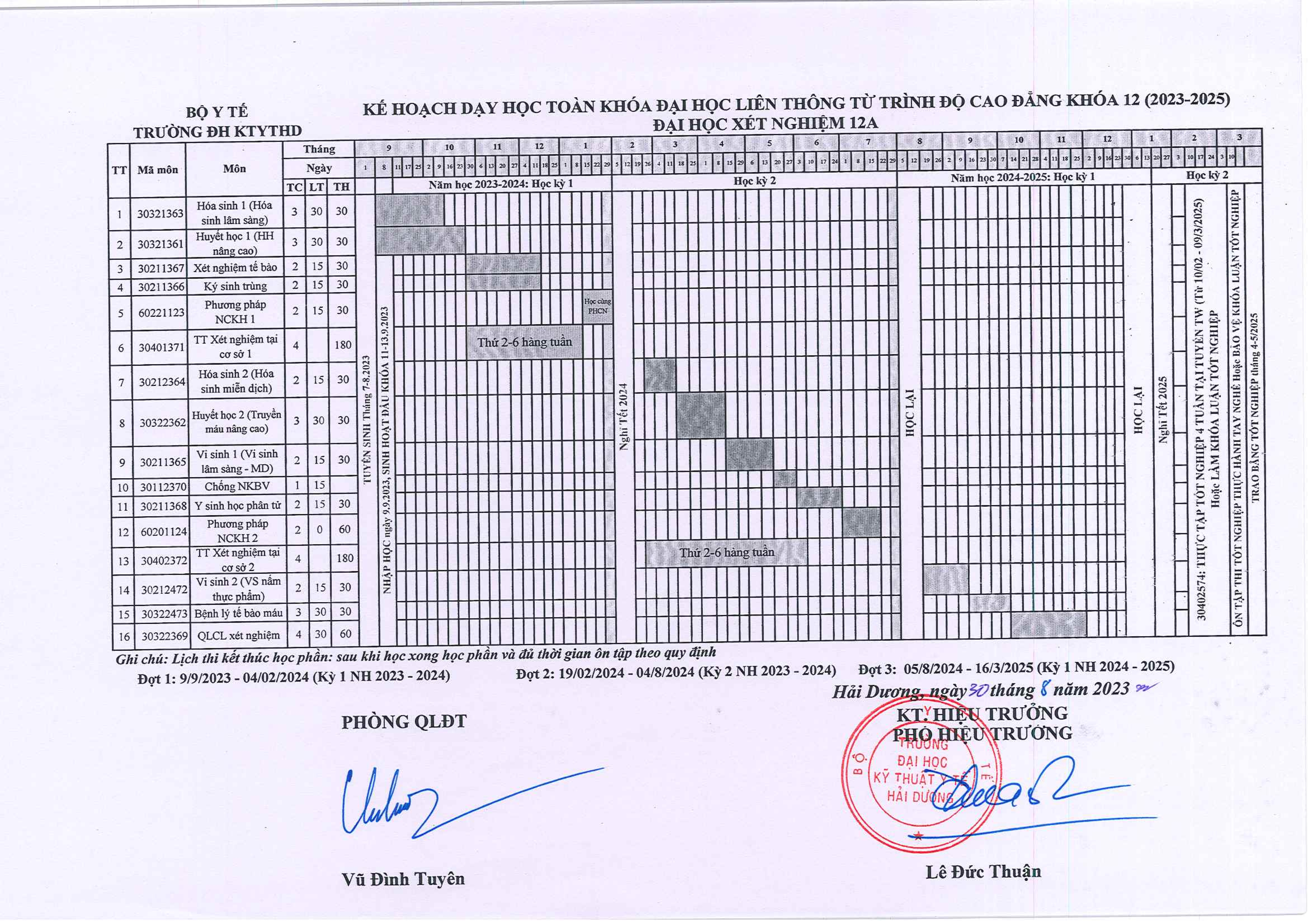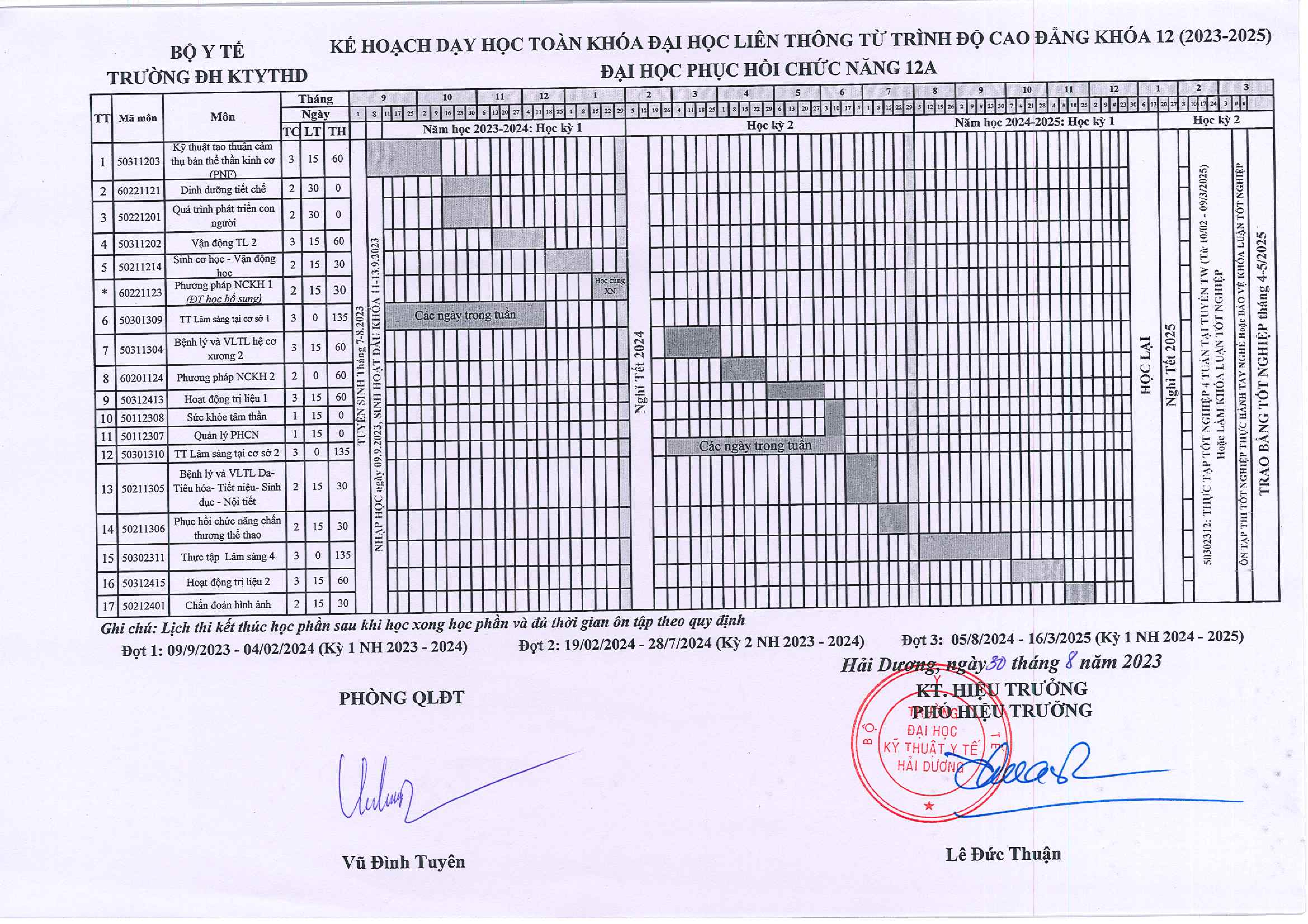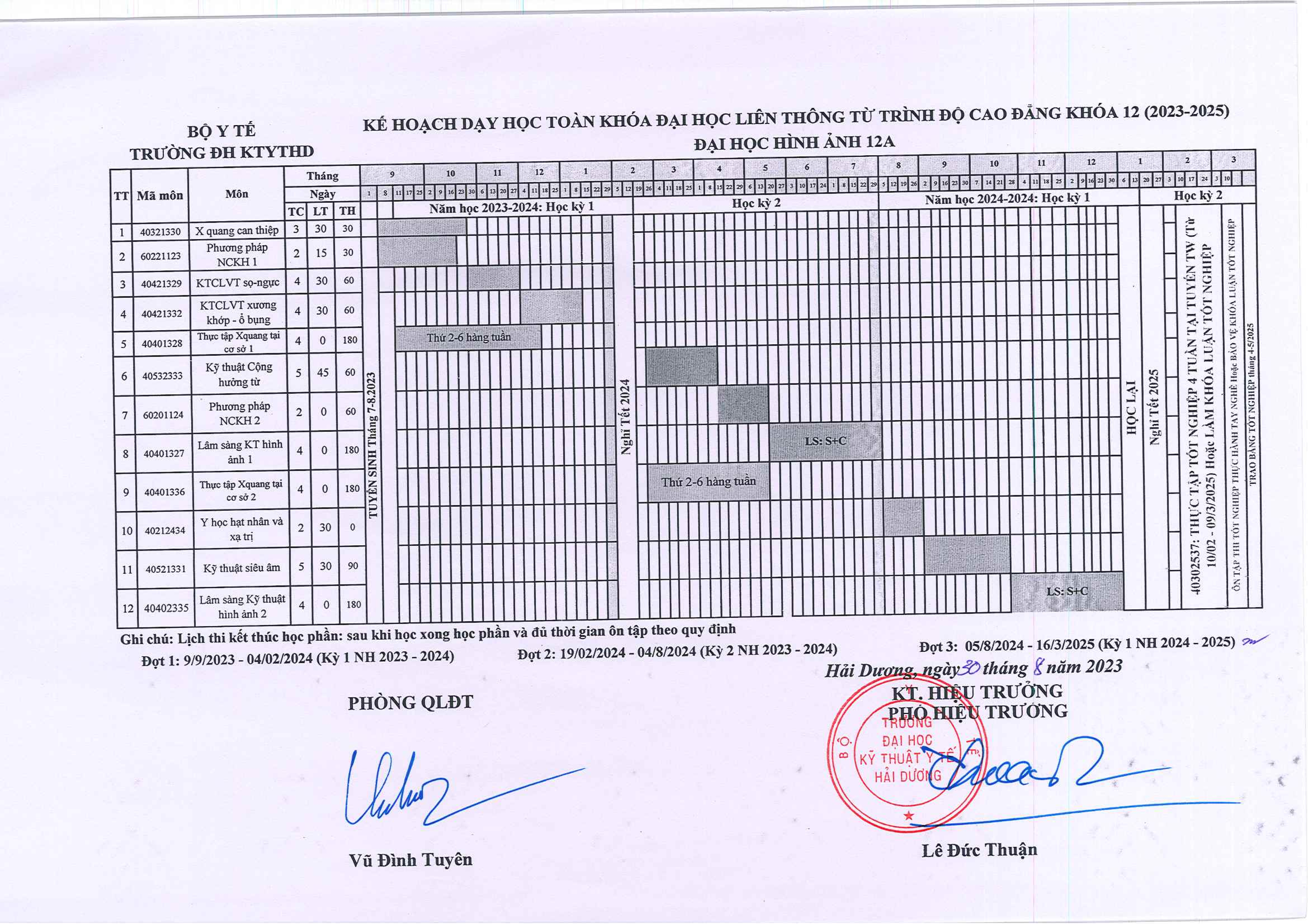 Kế hoạch dạy học toàn khoá ĐHLT khoá 12 (2023-2025) các lớp ĐH XN, ĐH PHCN, ĐH HA