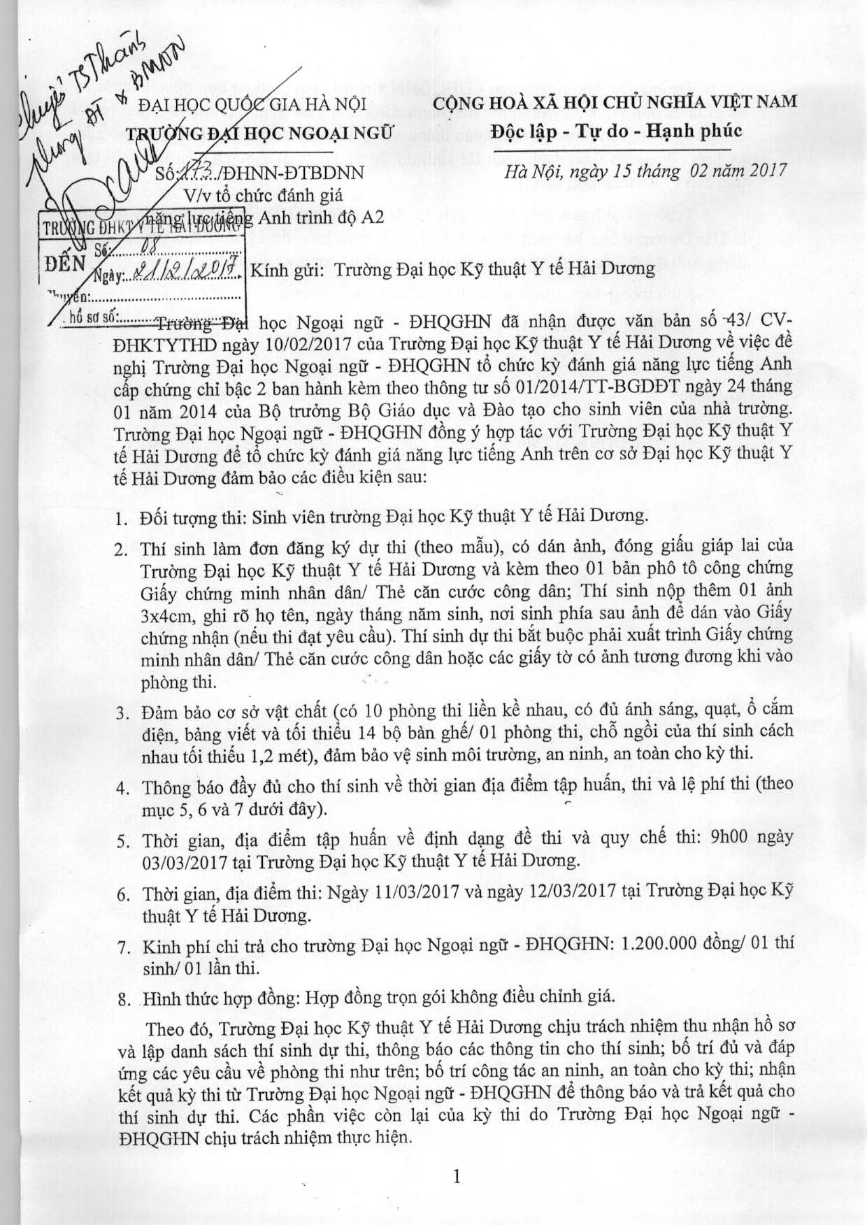Lịch thi đánh giá năng lực Tiếng Anh trình độ A2  Số lượt đọc: