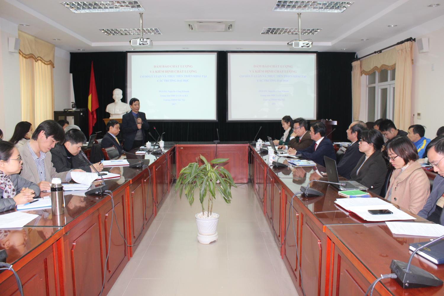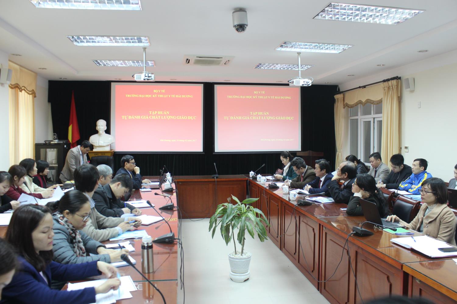 Tập huấn kiểm định chất lượng trường đại học Ngày 28/2/2017, Trường Đại học Kỹ thuật Y tế Hải Dương đã tổ chức tập huấn kiểm định chất lượng trường đại học cho gần 50 giảng viên, viên chức là thành viên Hội đồng tự đánh giá và các nhóm chuyên trách. Giảng viên tham gia giảng dạy gồm có PGS.TS Nguyễn Công Khanh – Giám đốc TT ĐBCLGD và Khảo thí - Trường Đại học Sư phạm Hà Nội; GS.TS Nguyễn Công Khẩn – Chuyên gia về NCKH &HTQT. Tham dự có TTND.PGS.TS Vũ Đình Chính - Chủ tịch Hội đồng trường, TS.BS Đinh Thị Diệu Hằng – Hiệu trưởng và các thầy trong Ban giám hiệu trường. Tại buổi tập huấn, PGS.TS Nguyễn Công Khanh đã cung cấp những kiến thức cập nhật về vấn đề kiểm định chất lượng và đảm bảo chất lượng trong bối cảnh hiện nay, giới thiệu bộ tiêu chuẩn kiểm định chất lượng trường đại học và kiểm định chương trình đào tạo do Bộ giáo dục và Đào tạo ban hành cũng như của Mạng lưới các trường đại học Đông Nam Á (AUN), đồng thời hướng dẫn chung về các kỹ thuật thu thập minh chứng và kỹ năng viết báo cáo tự đánh giá. Phát biểu tại buổi tập huấn, TS.BS Đinh Thị Diệu Hằng - Hiệu trưởng nhấn mạnh tầm quan trọng của kiểm định chất lượng trường đại học đối với nhà trường, khẳng định đây là nhiệm vụ sống còn đối với trường và là giải pháp hữu hiệu để đảm bảo và nâng cao chất lượng nhà trường. Hiệu trưởng trân trọng cảm ơn PGS.TS Nguyễn Công Khanh đã nhiệt tình tham gia tập huấn cho cán bộ giảng viên trường về kiểm định chất lượng và tự đánh giá chất lượng trường đại học; đề nghị mỗi cán bộ, giảng viên, viên chức cần thay đổi nhận thức và xác định việc đảm bảo chất lượng là nhiệm vụ của mỗi người, mỗi phòng, ban, bộ môn, trung tâm để duy trì và nâng cao chất lượng nhà trường và xây dựng văn hoá chất lượng trong nhà trường. Theo đó, TTND.PGS.TS Vũ Đình Chính - Chủ tịch Hội đồng trường cũng nhấn mạnh kiểm định chất lượng là một trong bốn nhiệm vụ trọng tâm của năm học đã được đề cập trong Nghị quyết Hội đồng trường, là giải pháp thiết yếu để mỗi cán bộ, giảng viên, viên chức xem xét đánh giá những công việc đã làm để nâng cao chất lượng trong mọi lĩnh vực của trường, trước mắt ưu tiên kiểm định chất lượng cấp trường, sau đó kiểm định chất lượng một số chương trình đào tạo trọng tâm của nhà trường. Số lượt đọc:
