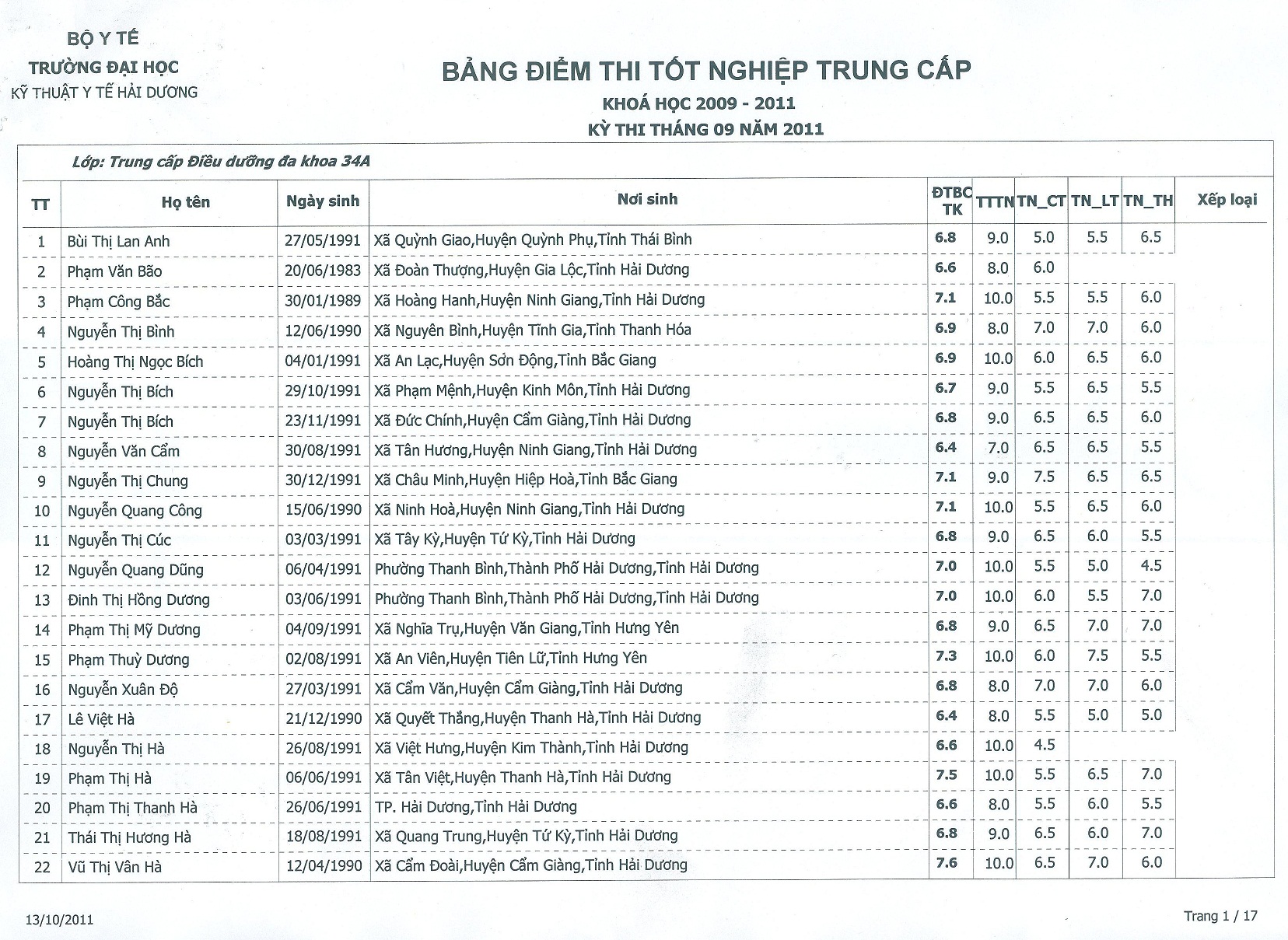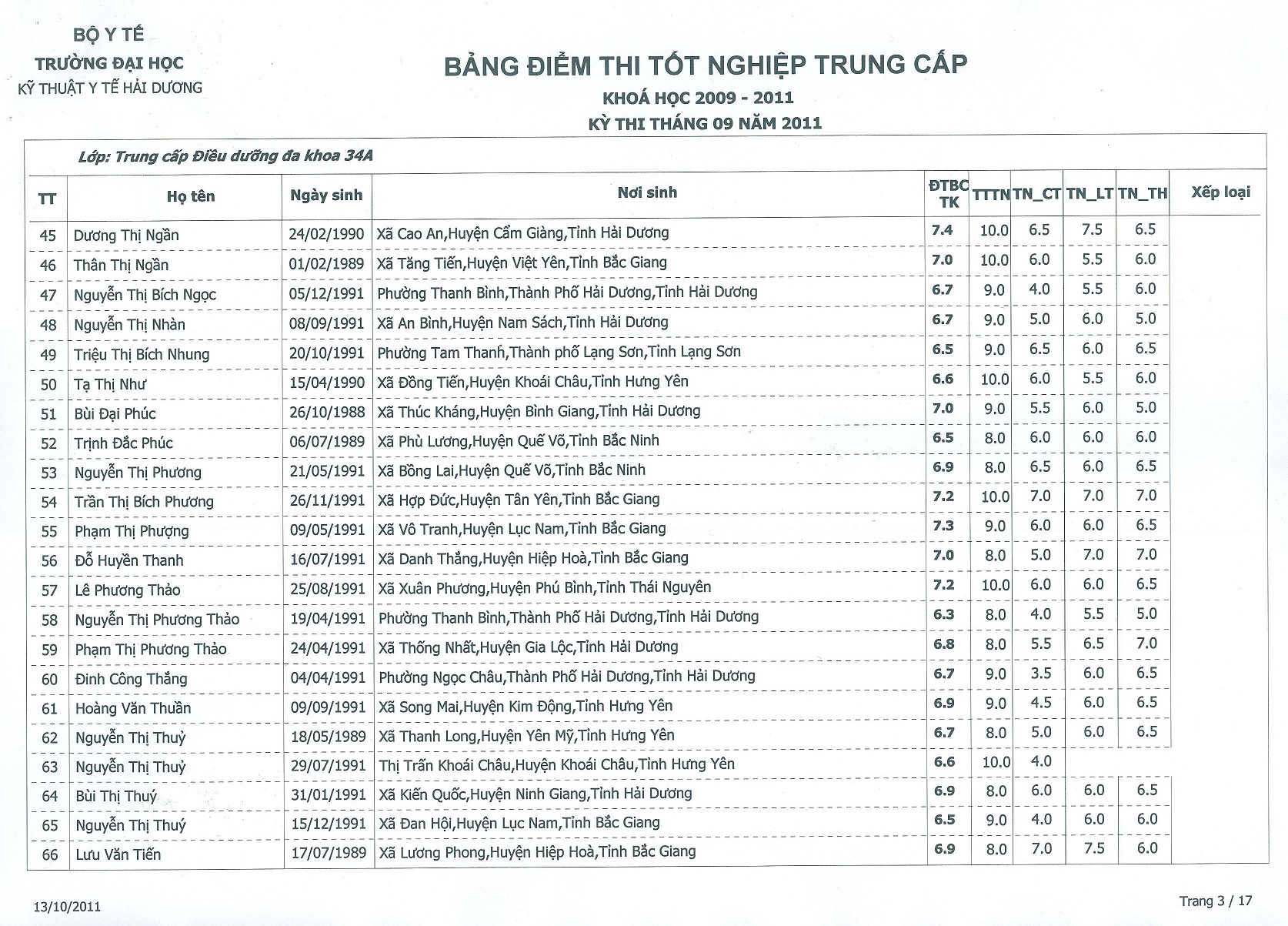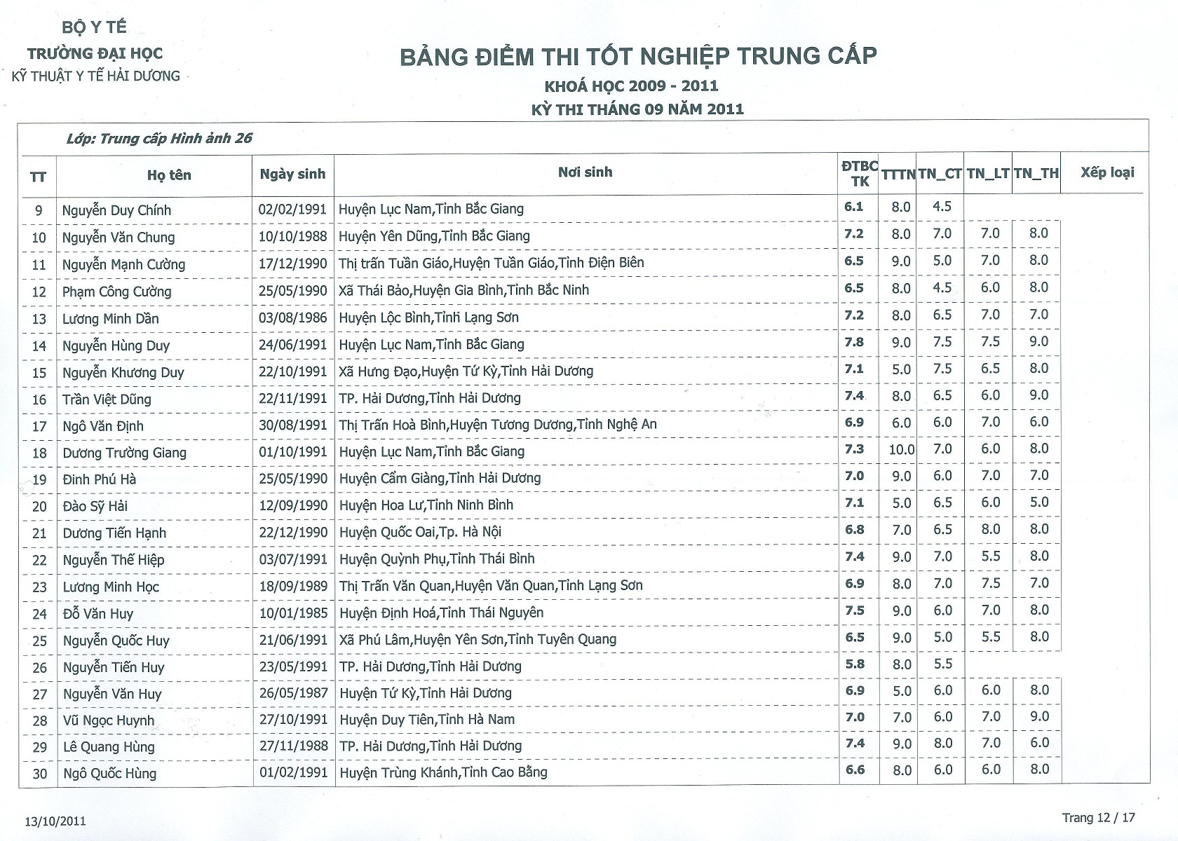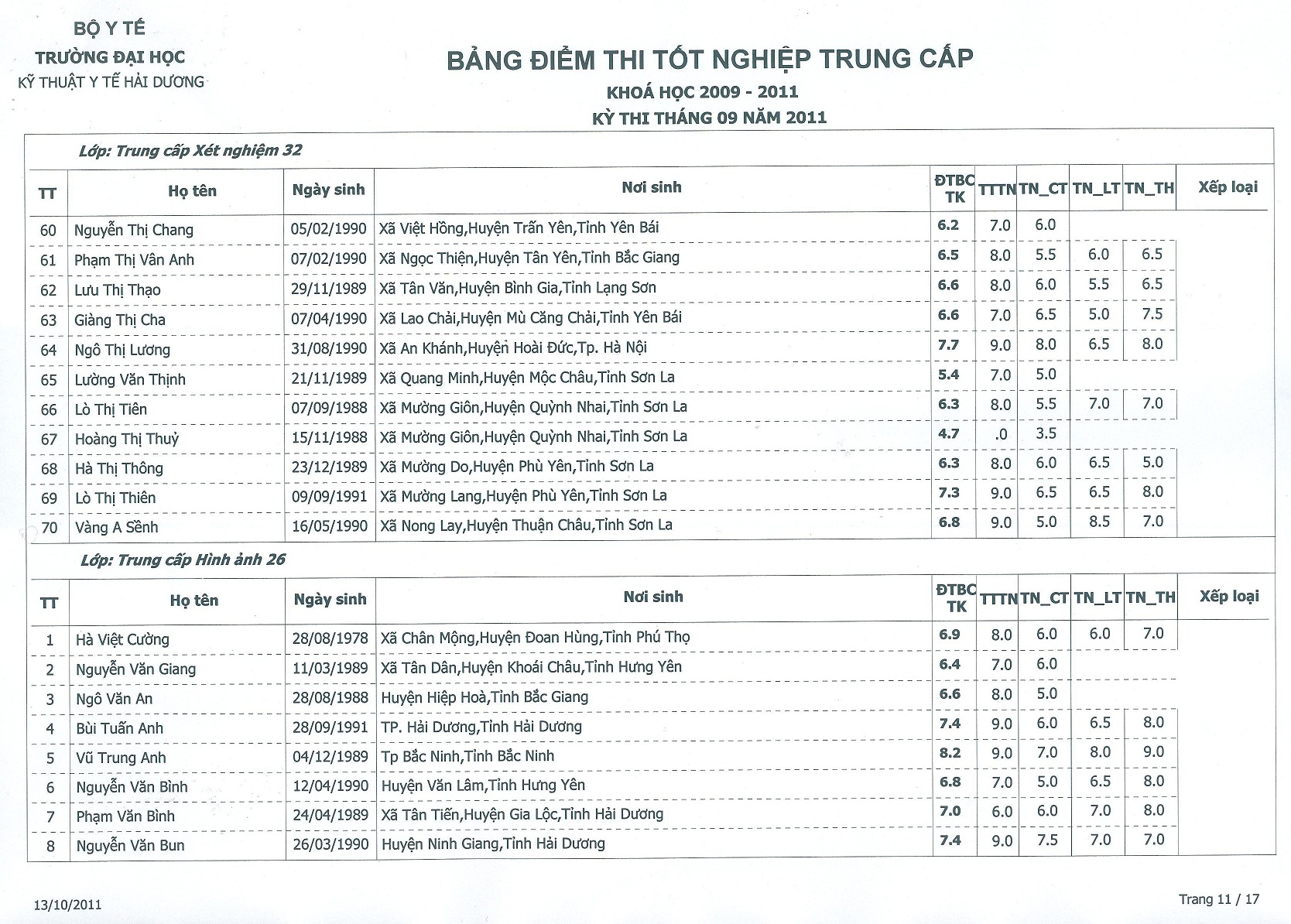 Bảng điểm thi Tốt nghiệp Trung cấp Khóa học 2009-2011 Đánh giá của bạn: Tổng số: