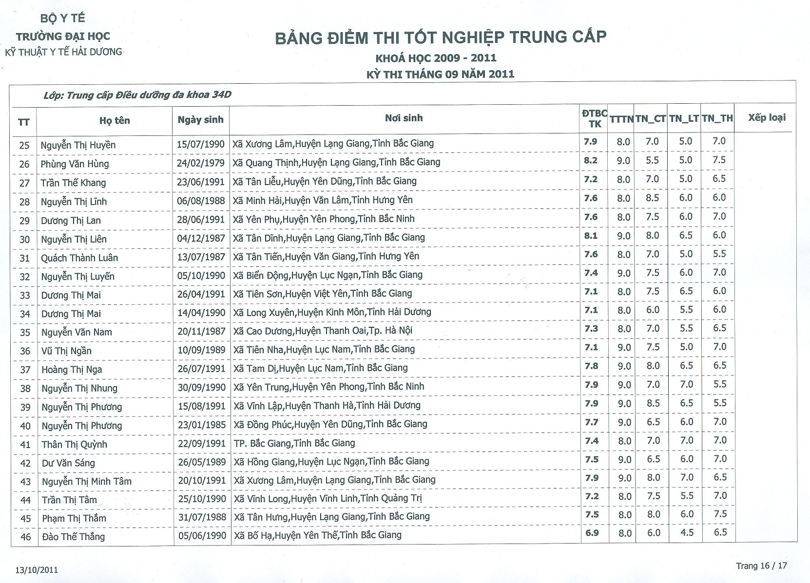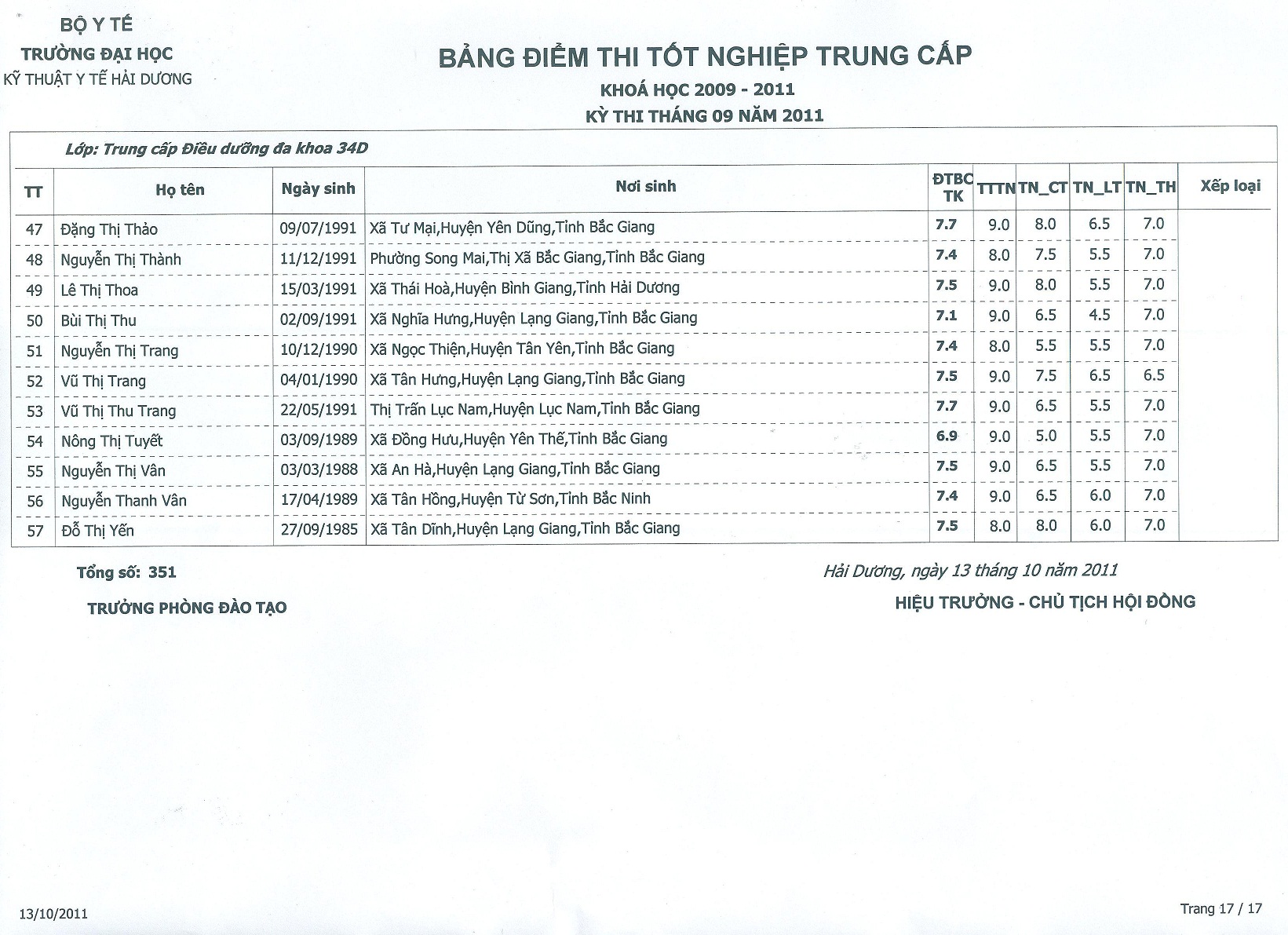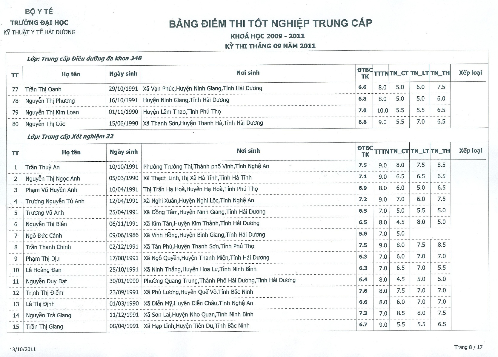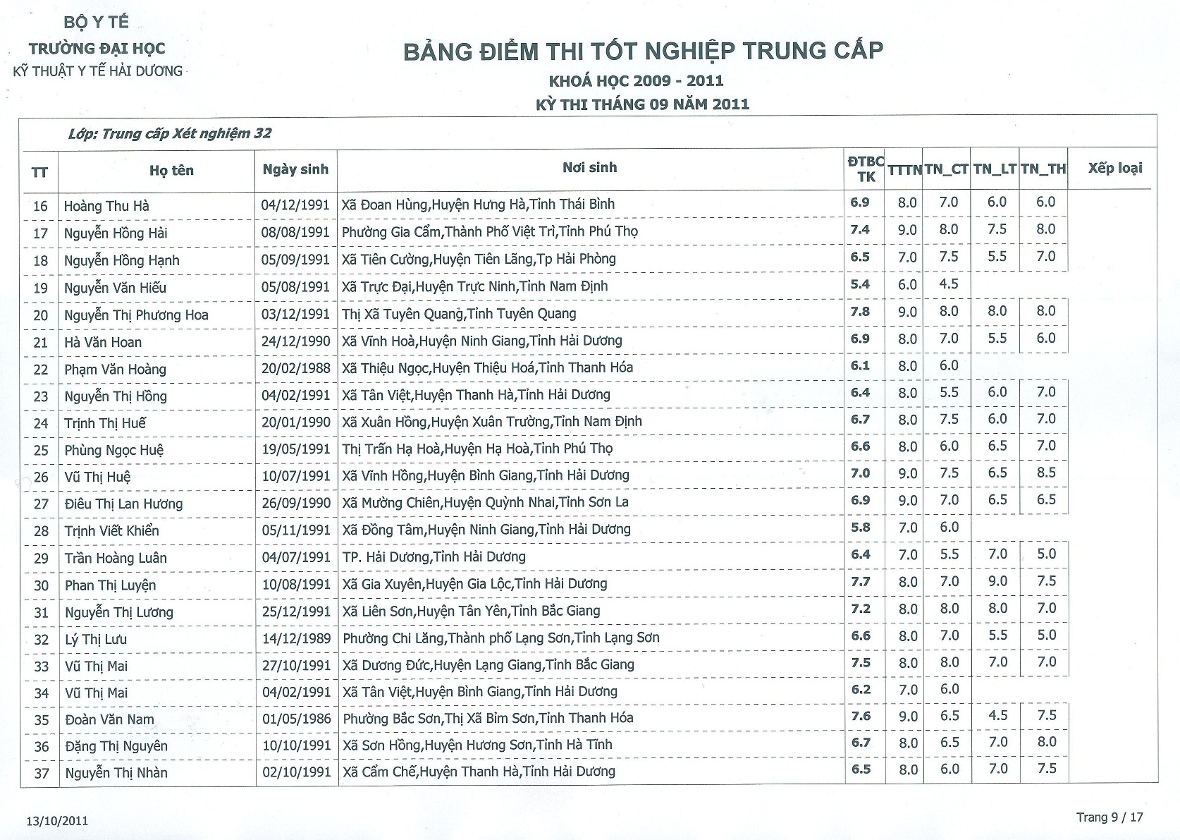 Bảng điểm thi Tốt nghiệp Trung cấp Khóa học 2009-2011 Đánh giá của bạn: Tổng số: