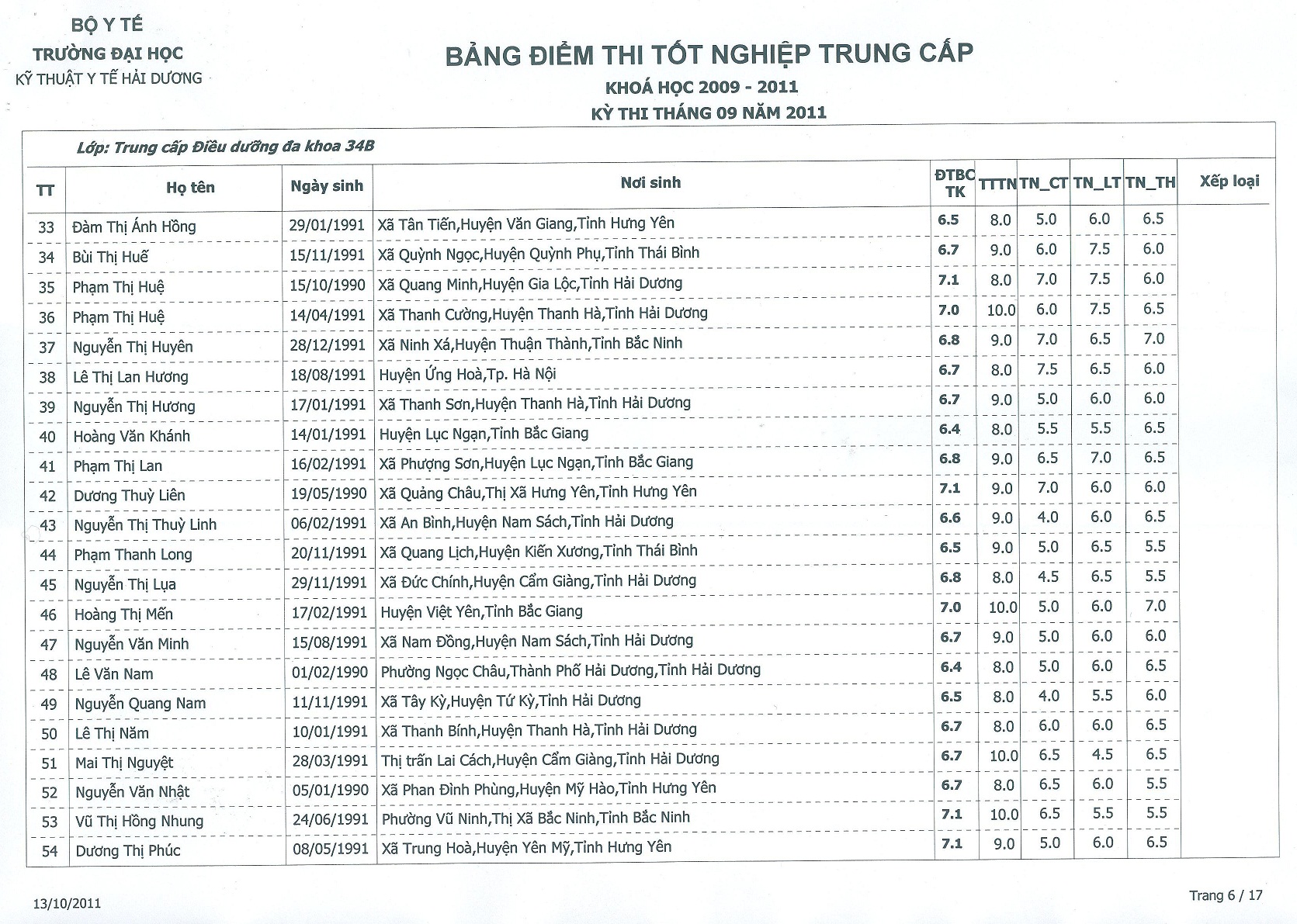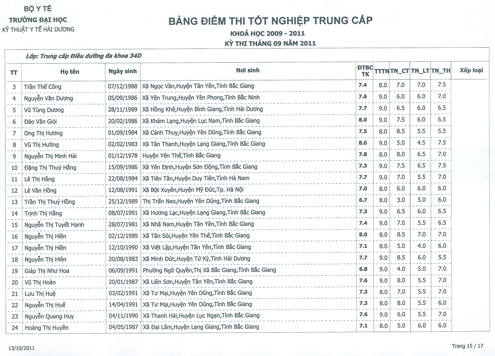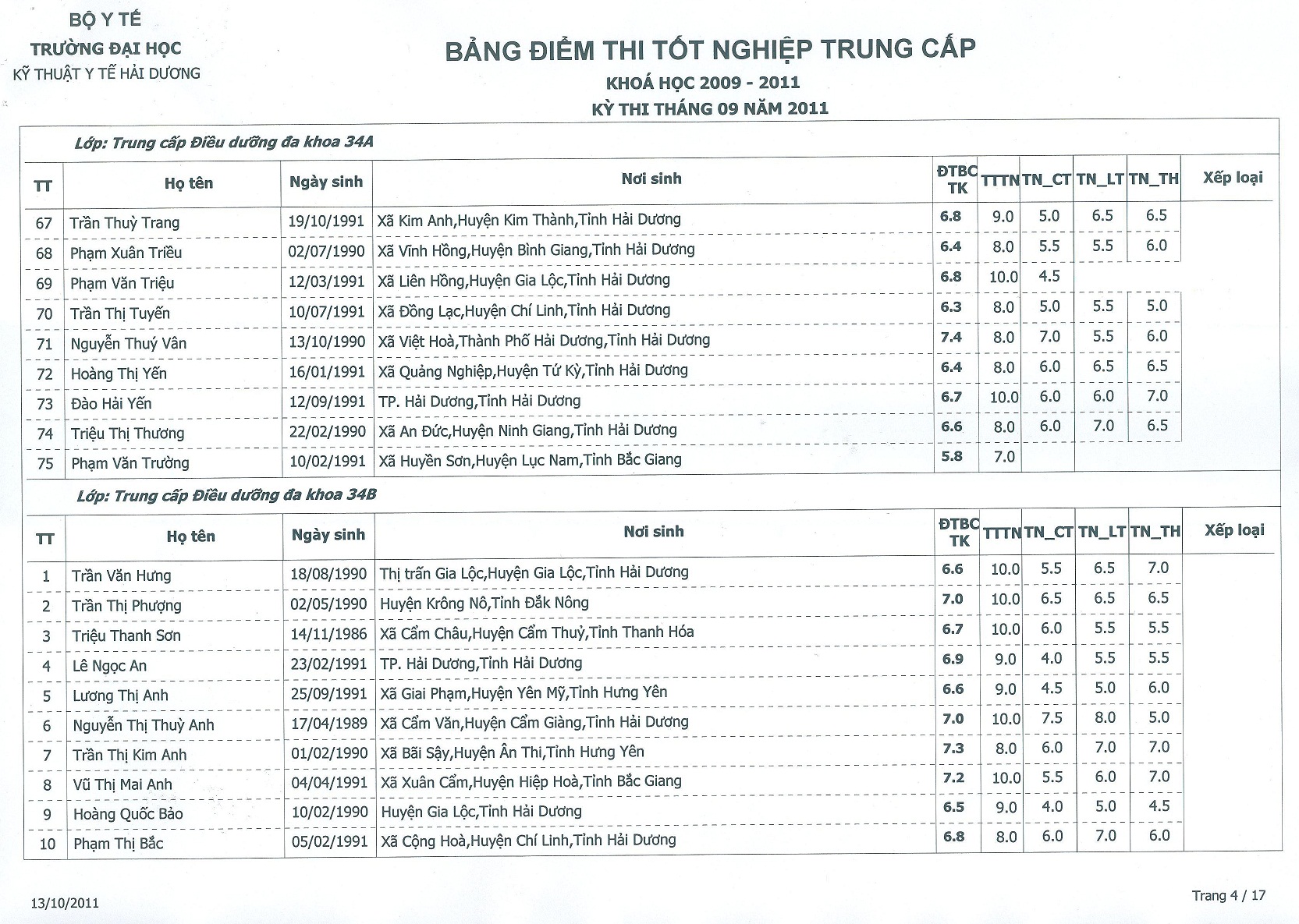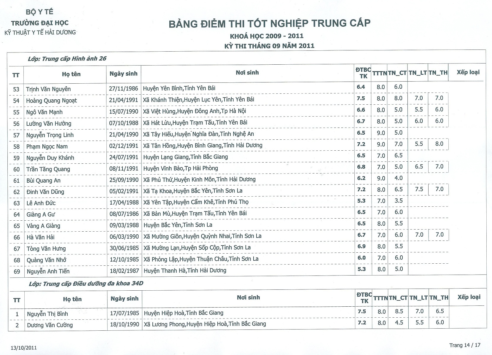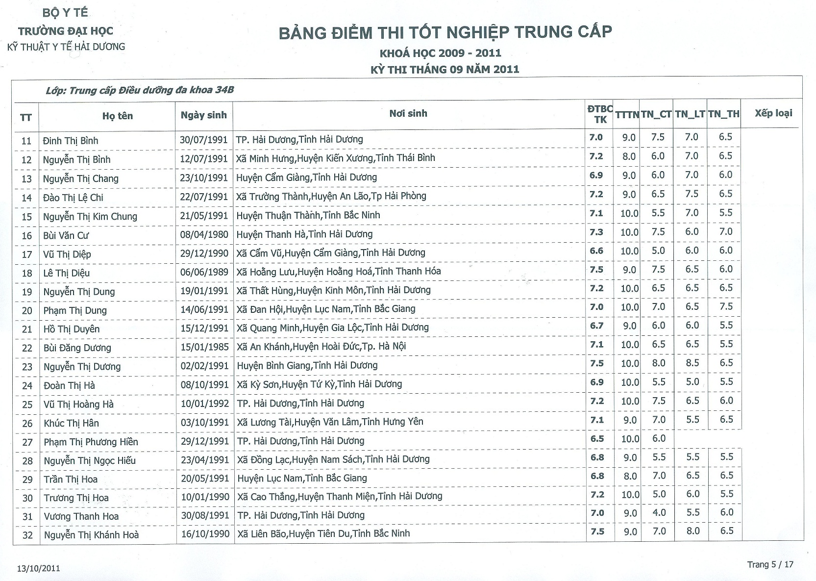 Bảng điểm thi Tốt nghiệp Trung cấp Khóa học 2009-2011 Đánh giá của bạn: Tổng số:
