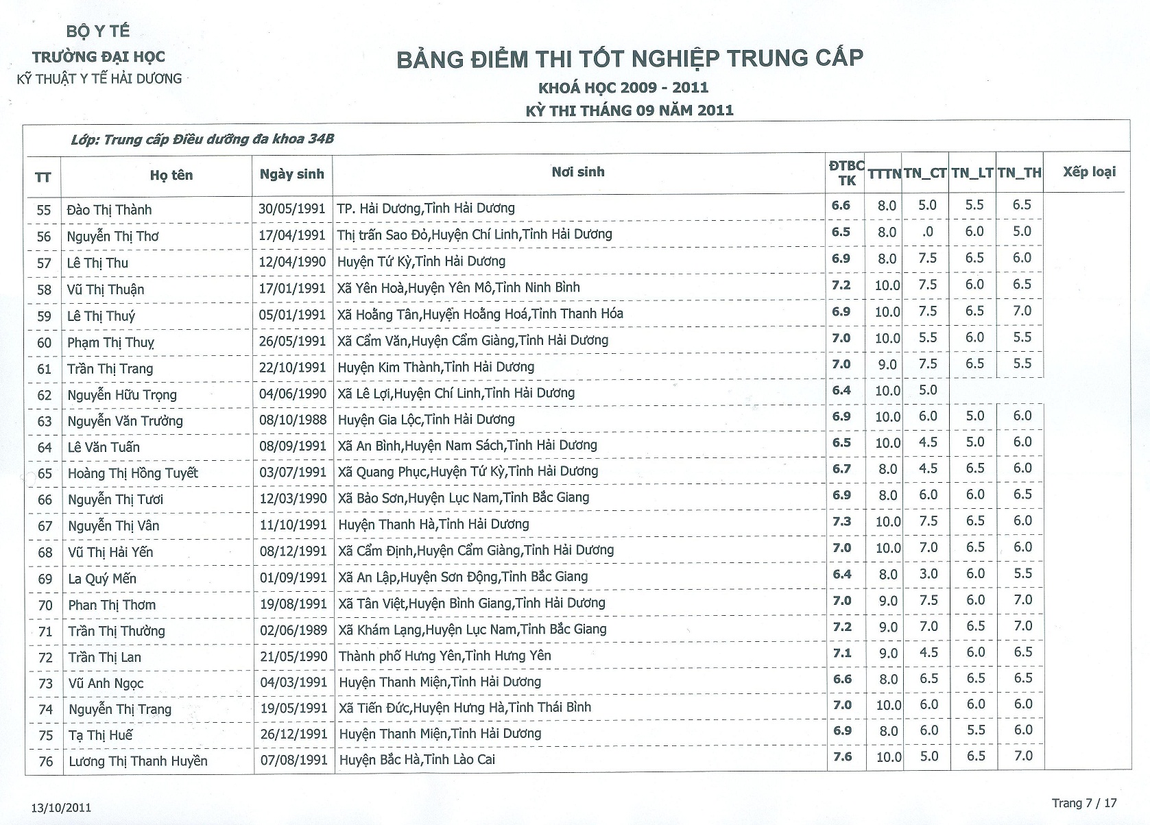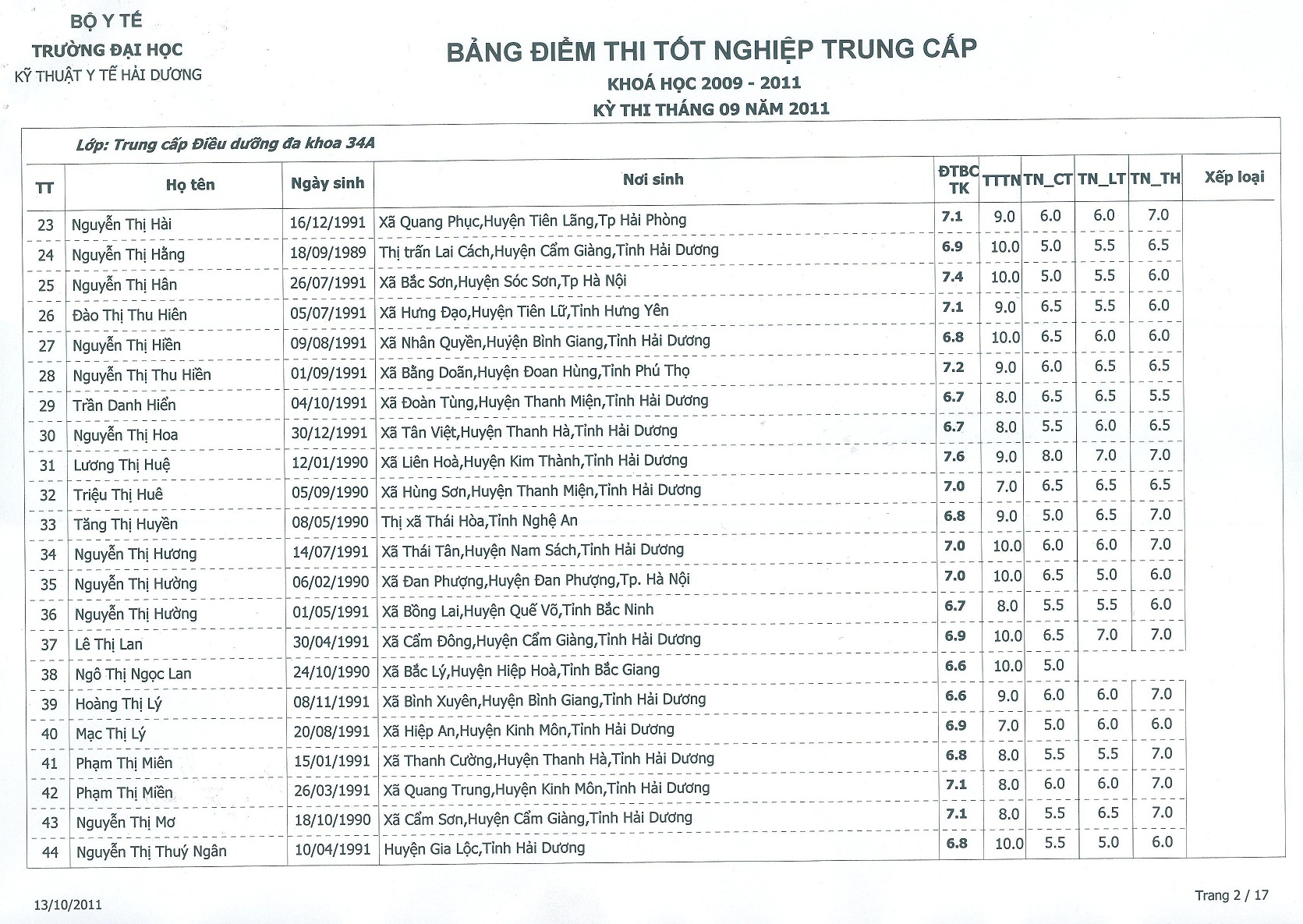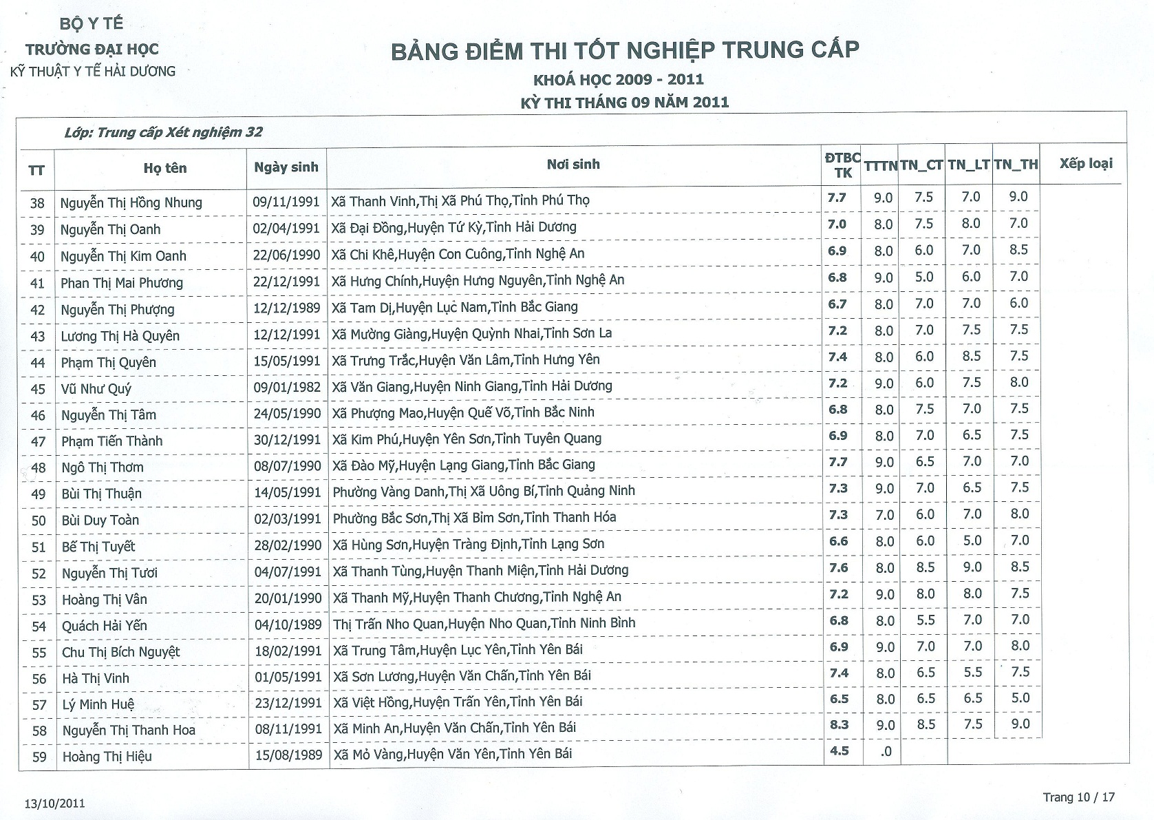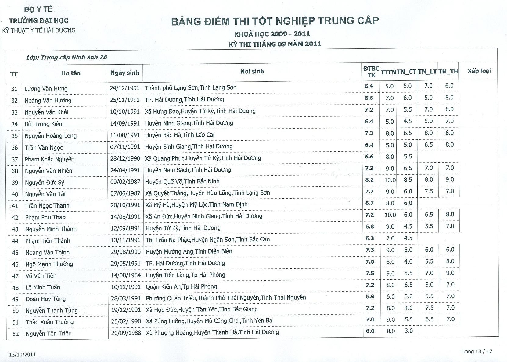 Bảng điểm thi Tốt nghiệp Trung cấp Khóa học 2009-2011 Đánh giá của bạn: Tổng số: