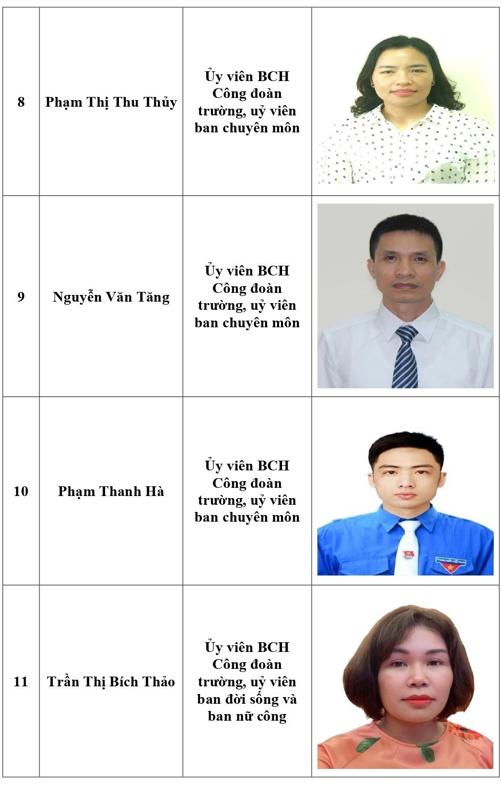 chí Phạm Thanh Hà: Ủy viên BCH Công đoàn trường, uỷ viên.