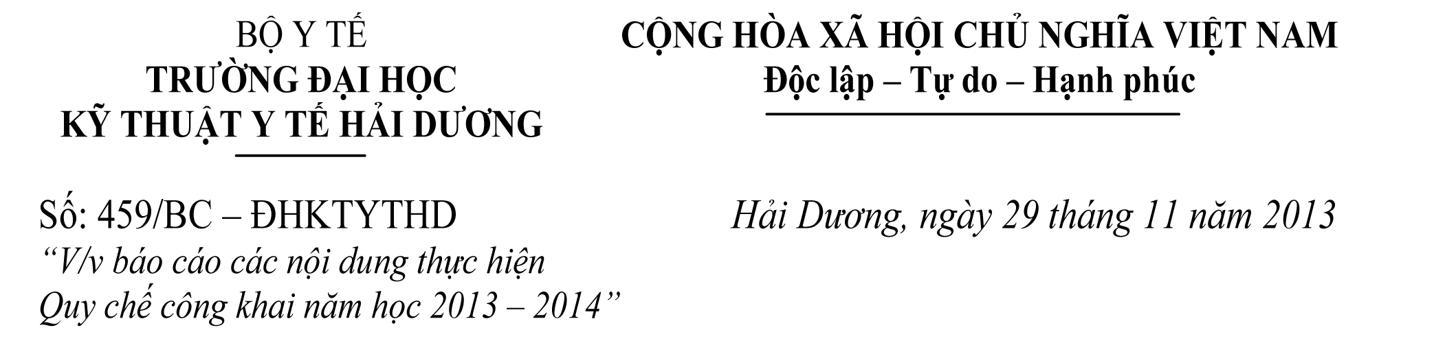 2014, Trường Đại học Kỹ thuật Y tế Hải Dương báo cáo các nội dung cụ thể như