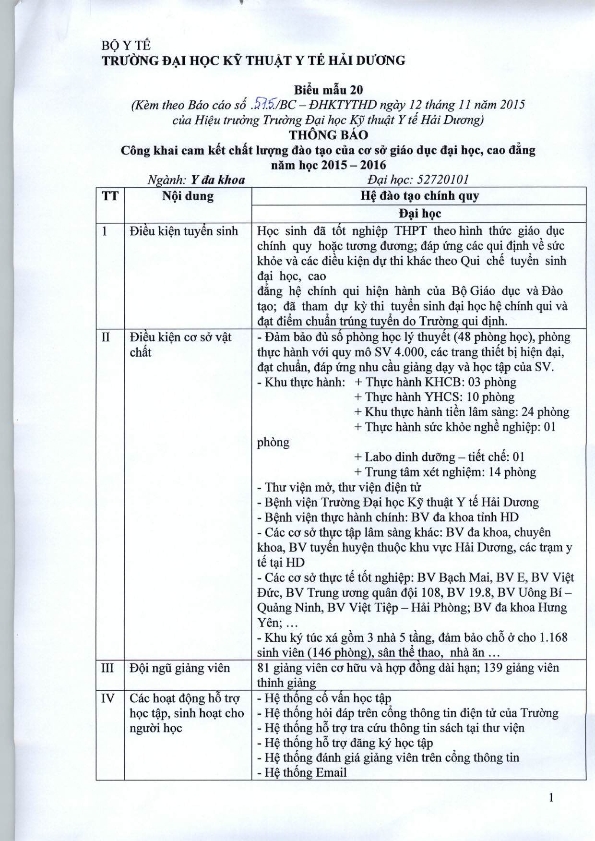 Báo cáo chuẩn cơ sở giáo dục (Số 150/BC-ĐHKTYTHD ngày 26/3/2025) 26/03/2025 03:17' PM