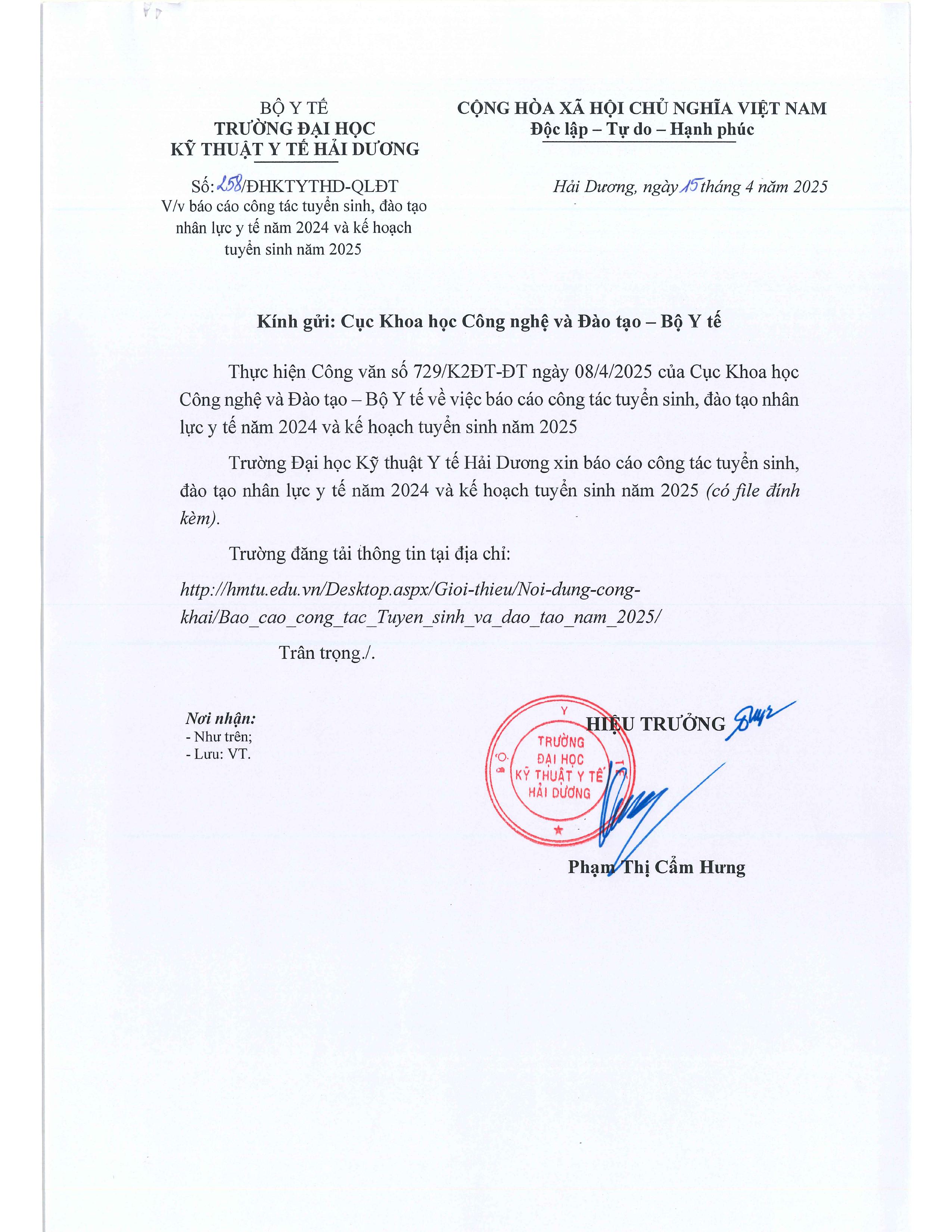 21/05/2025 02:19:06 PM | Bài mới: Báo cáo thường niên năm học 2024-2025 (Số 452/BC-ĐHKTYTHD, ngày 27/6/2025) 29/06/2025 03:30' PM