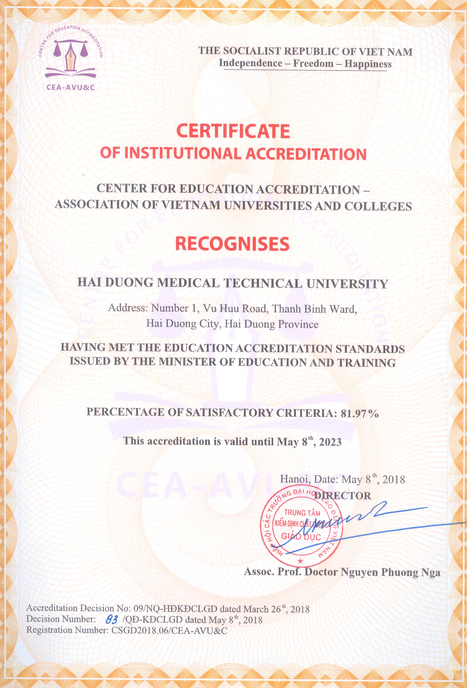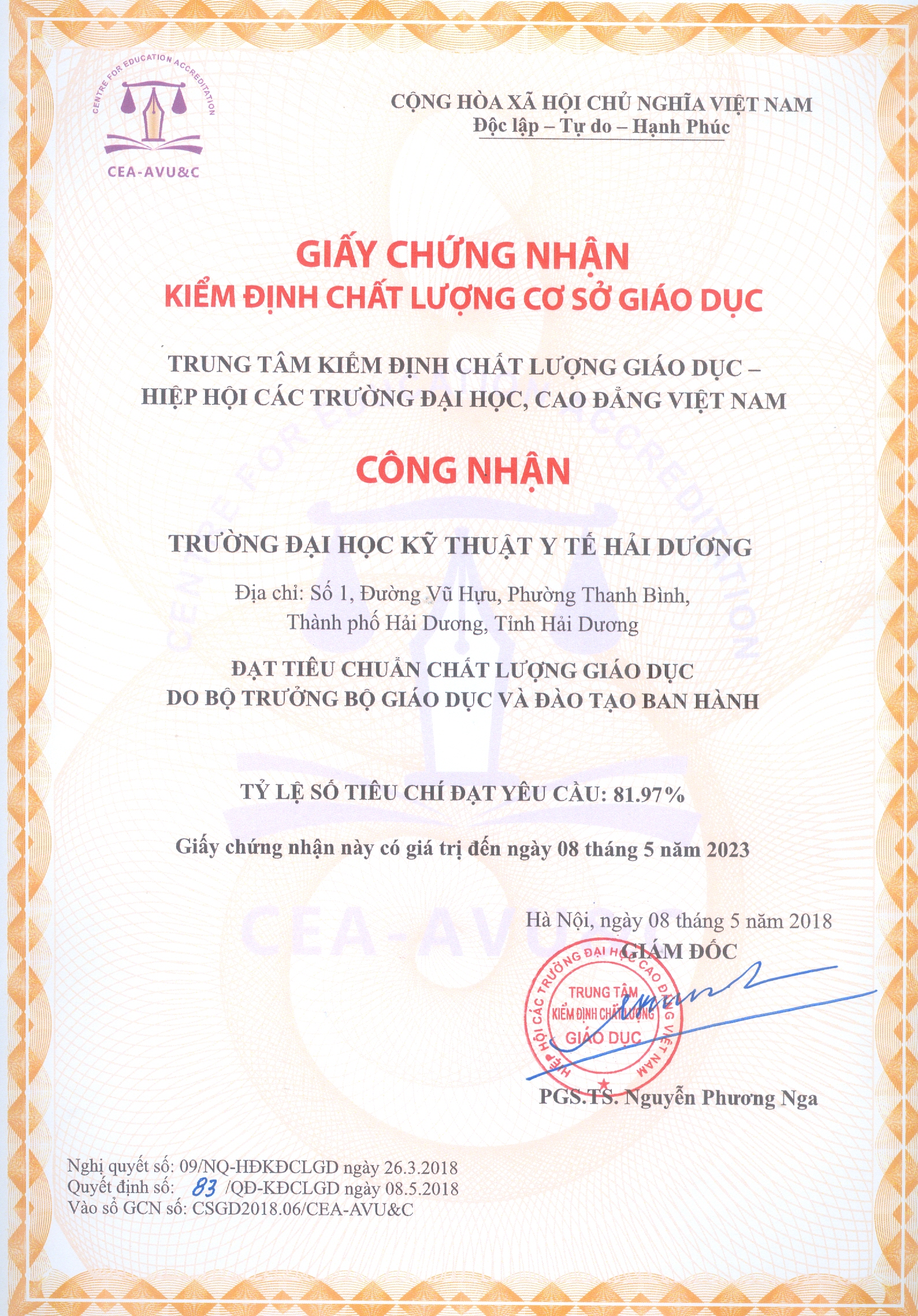 Trường Đại học Kỹ thuật Y tế Hải Dương có sứ mệnh đào tạo Kỹ thuật Y học và Điều dưỡng ở trình độ đại học (Xem tiếp...)
