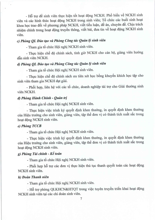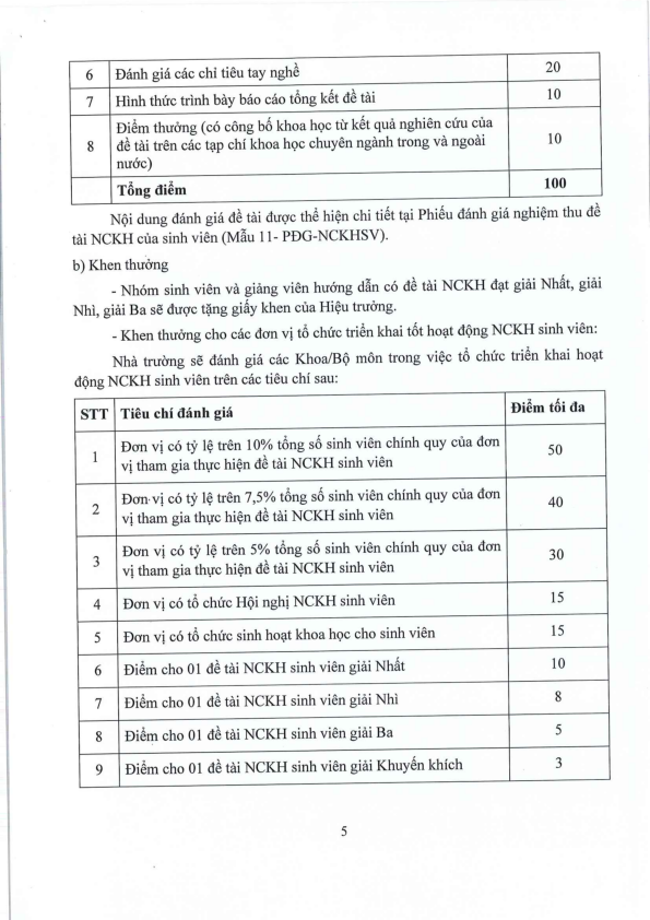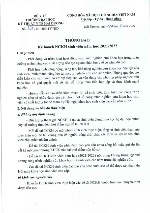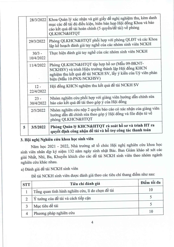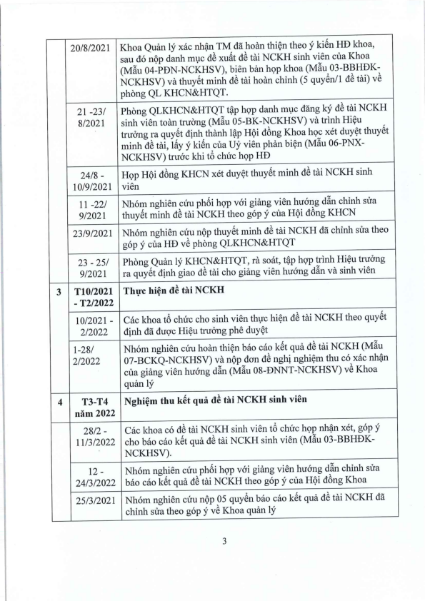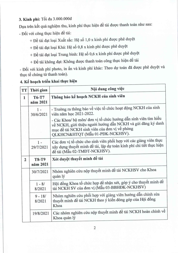 Kế hoạch NCKH sinh viên năm học 2021-2022