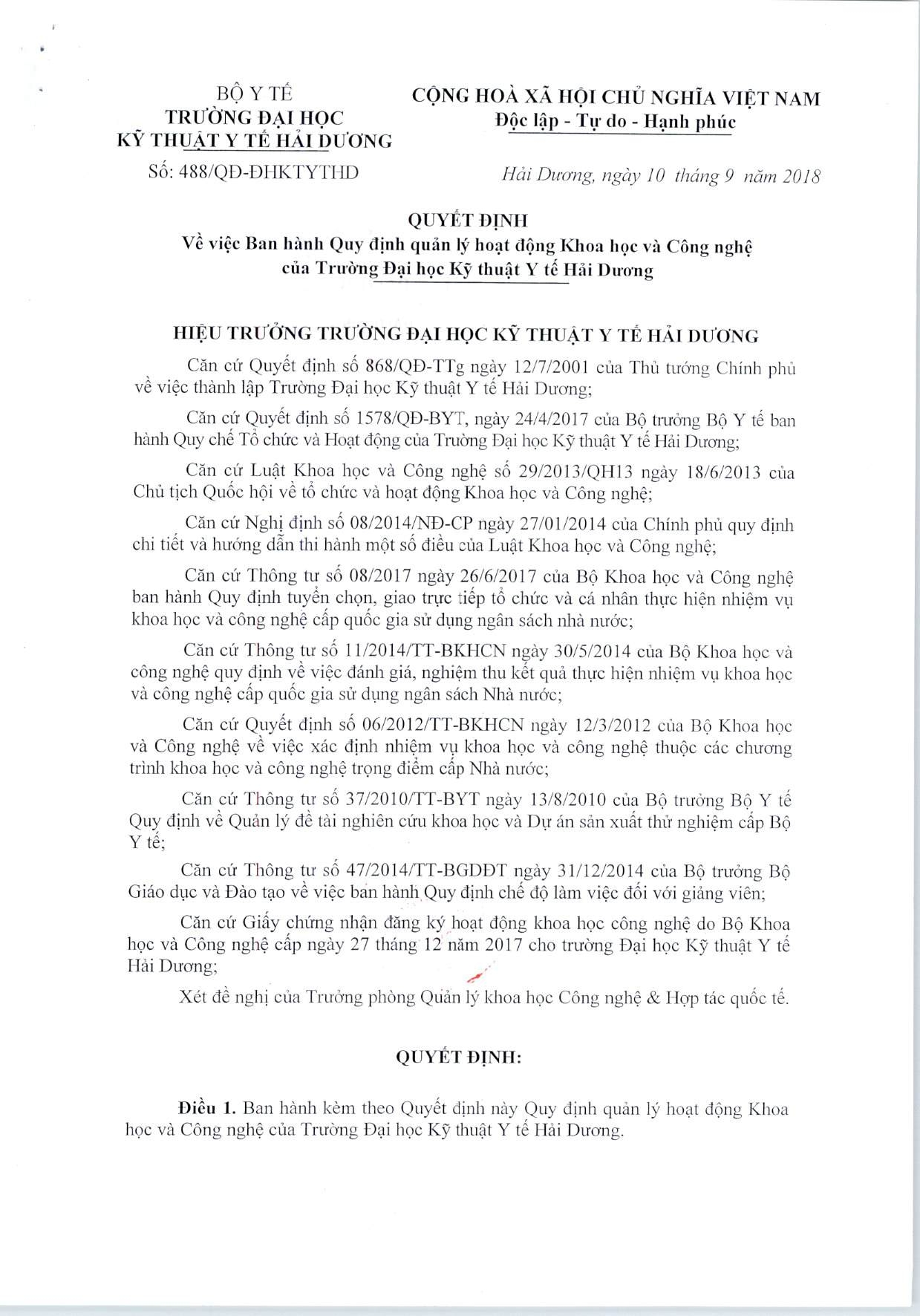 Quy định quản lý hoạt động khoa học và công nghệ