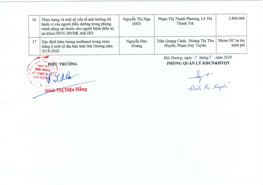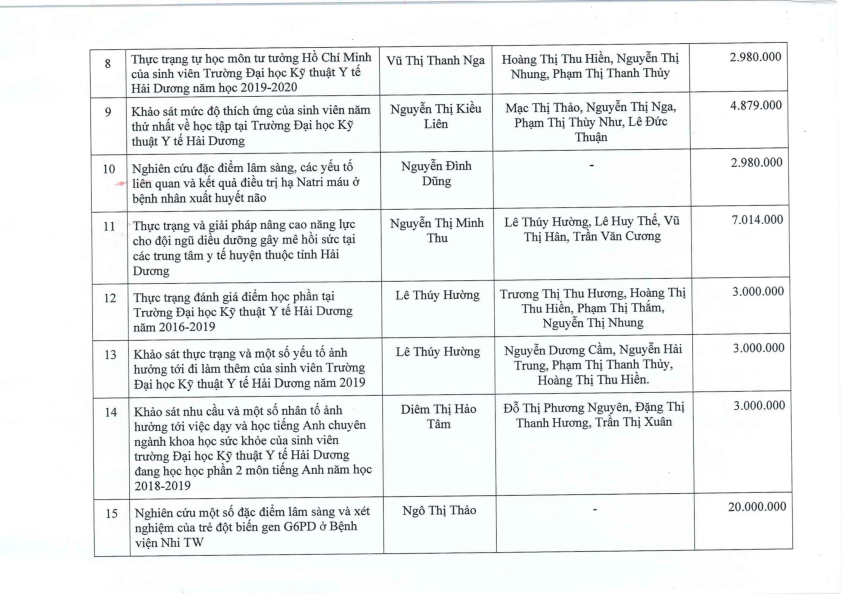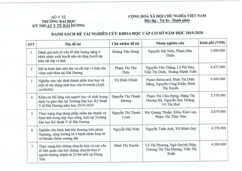 DANH SÁCH ĐỀ TÀI NCKH CẤP CƠ SỞ 2019 2020