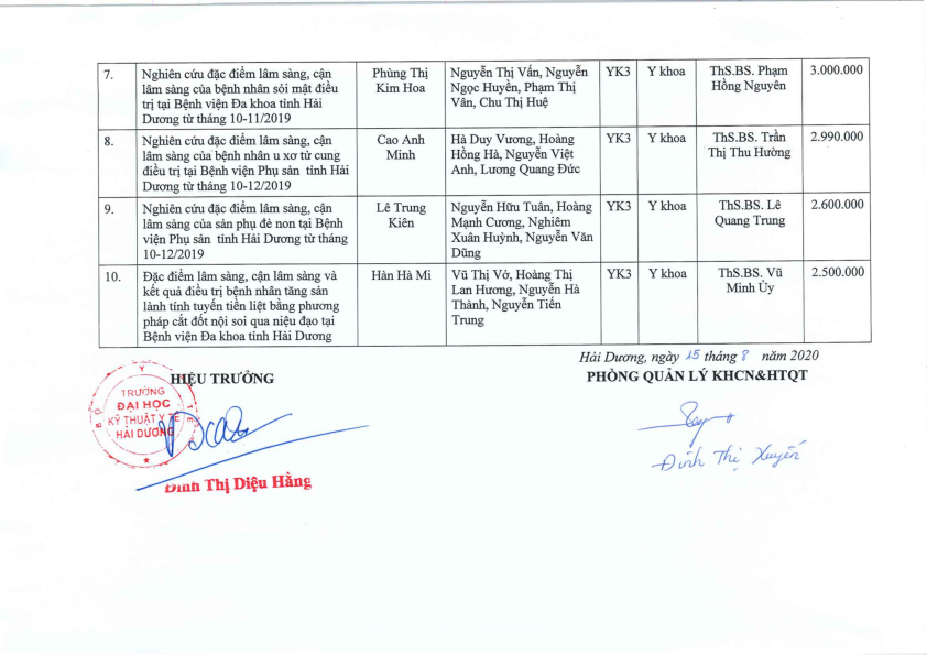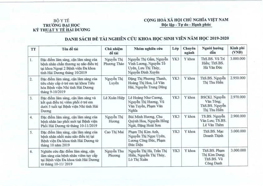 DANH SÁCH ĐỀ TÀI NCKH SINH VIÊN 2019 2020