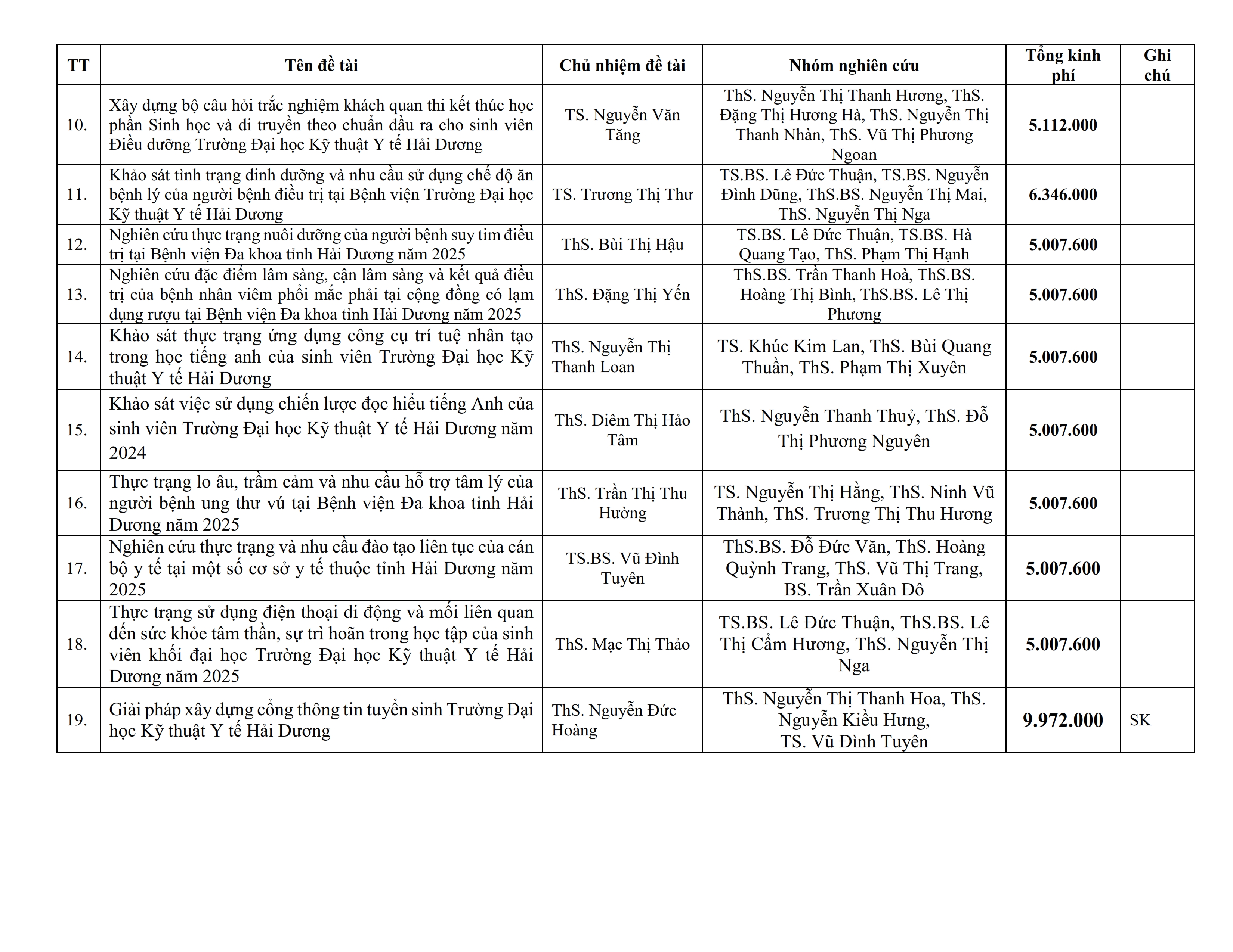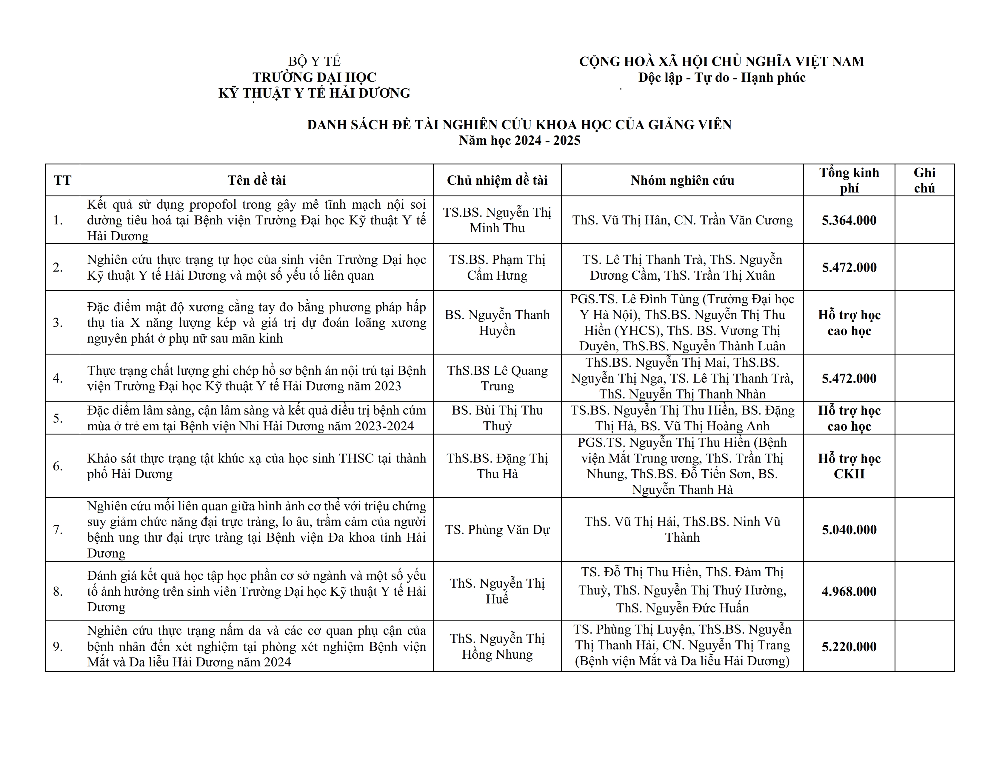 Danh sách đề tài NCKH của giảng viên - Năm học 2024-2025