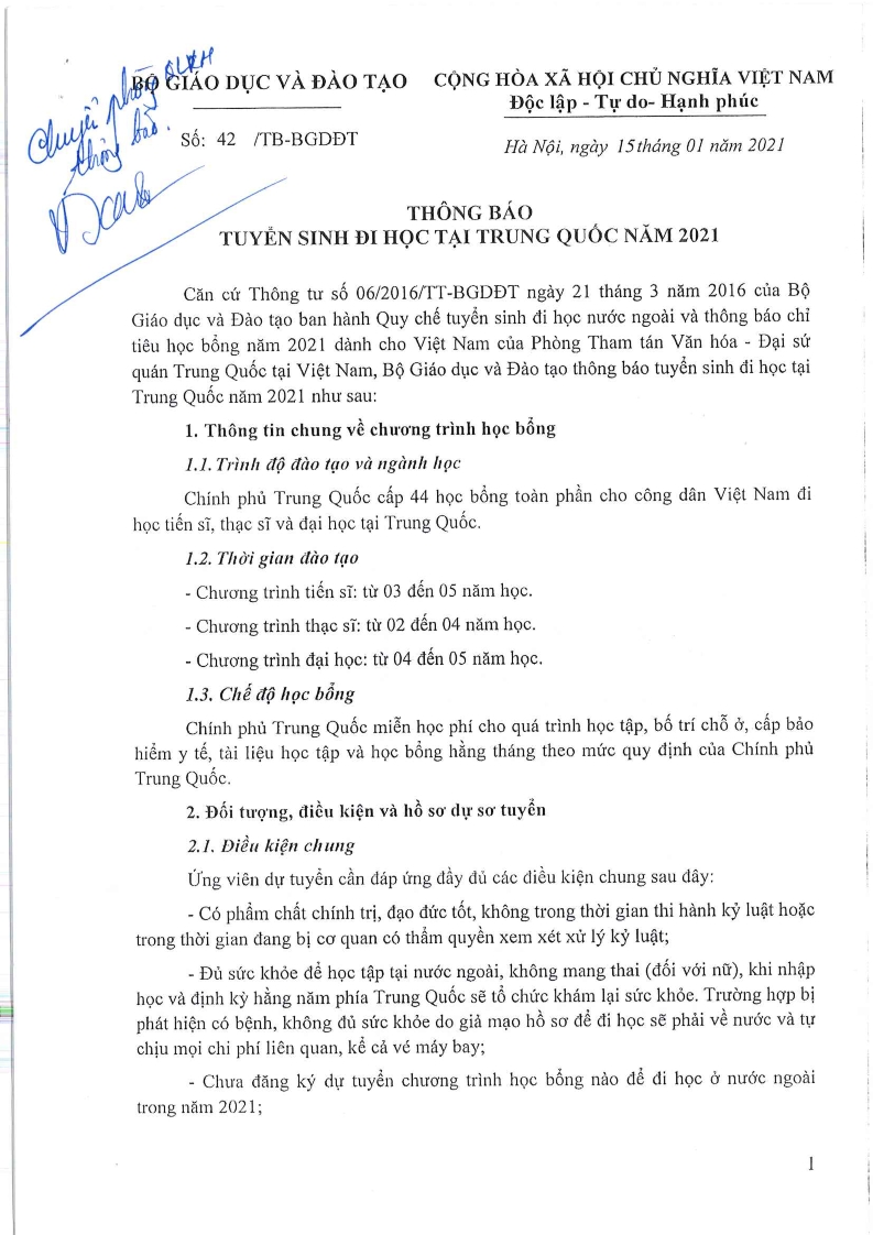 Tuyển sinh đi học tại Trung Quốc năm 2021