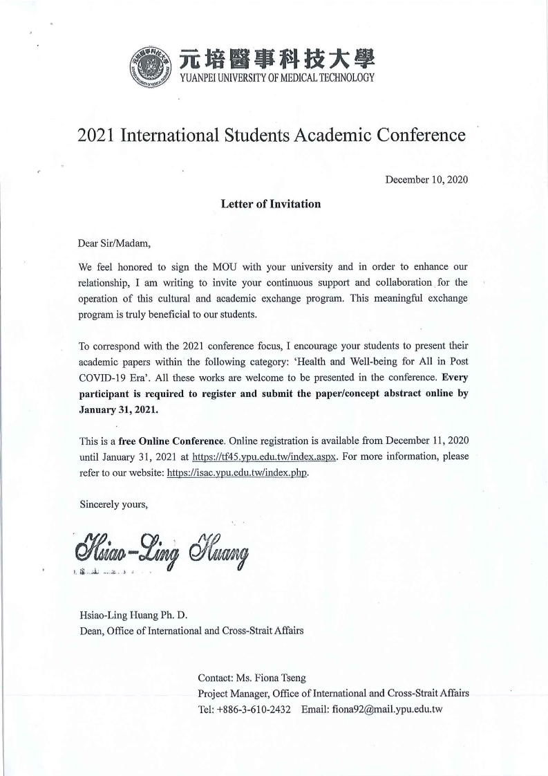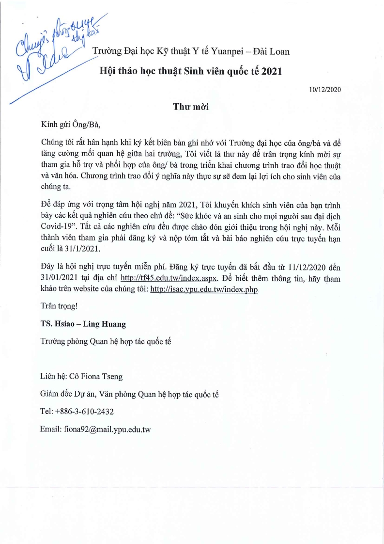 Thông báo hội thảo học thuật sinh viên quốc tế 2021