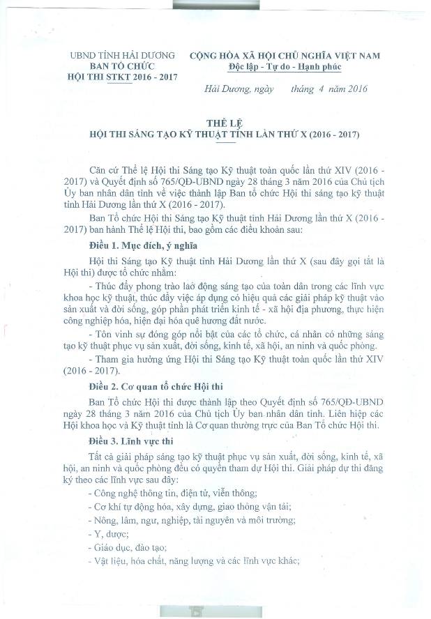 Hội thi sáng tạo kỹ thuật tỉnh lần thứ X (2016 - 2017)