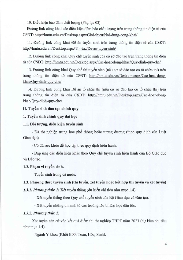 Đề án tuyển sinh trình độ đại học năm 2024 01/02/2024 04:25' PM