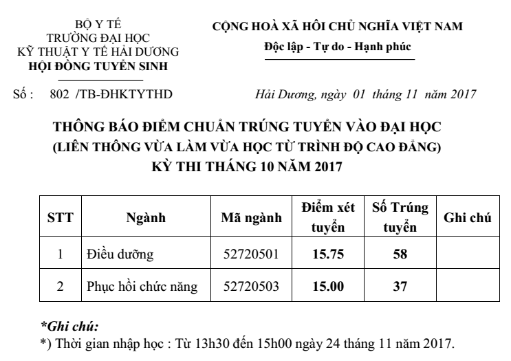 02/11/2017 10:33:18 AM | Tin mới: Thông báo Điểm trúng tuyển Đại học Liên thông Chính qui Đợt 2 - Năm 2024 (Số 429/TB-ĐHKTYTHD, ngày 12/7/2024) 15/07/2024 10:27' AM