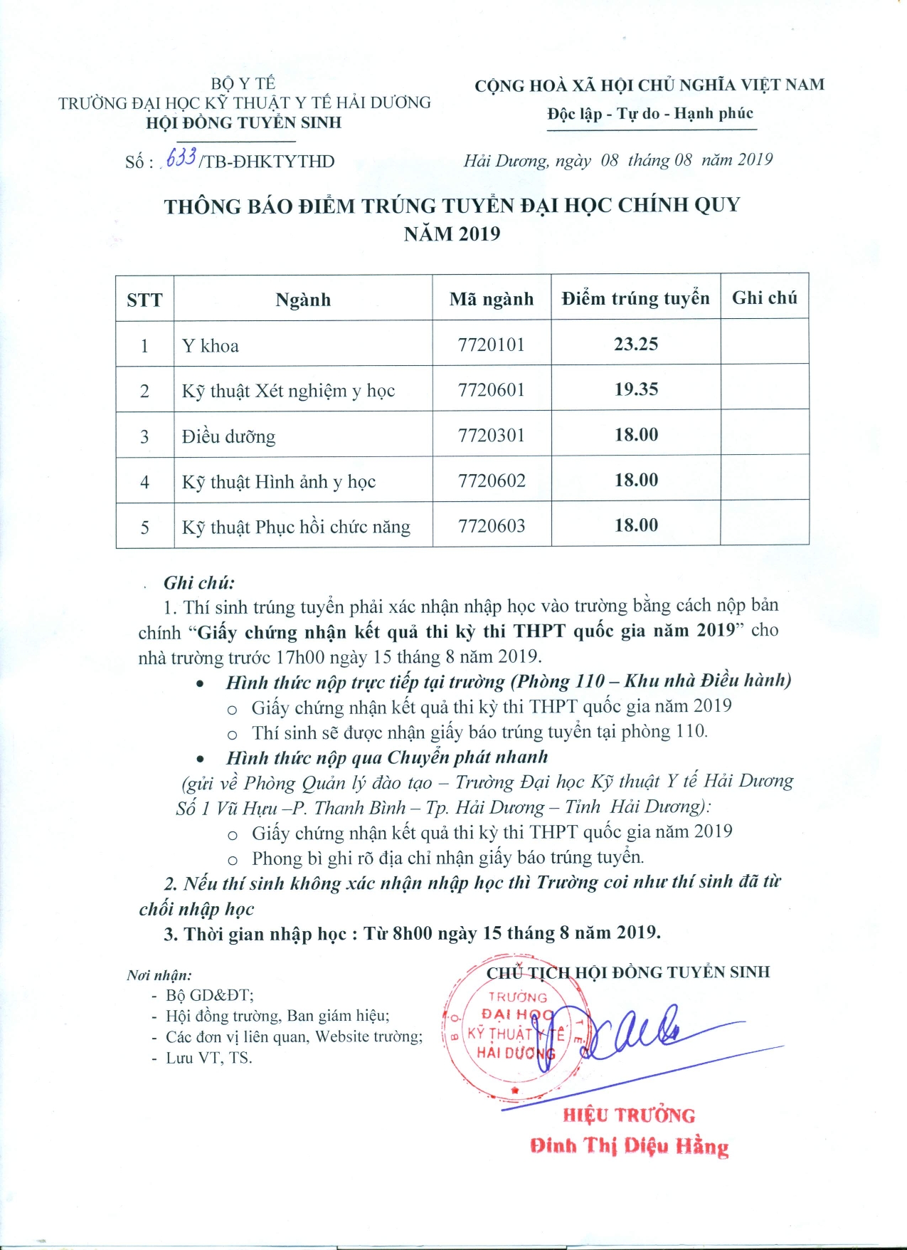 08/08/2019 04:40:20 PM | Tin mới: Thông báo điểm trúng tuyển Đại học Chính quy Năm 2025 (Số 626/TB-ĐHKTYTHD ngày 22/8/2025) 22/08/2025 10:12' PM