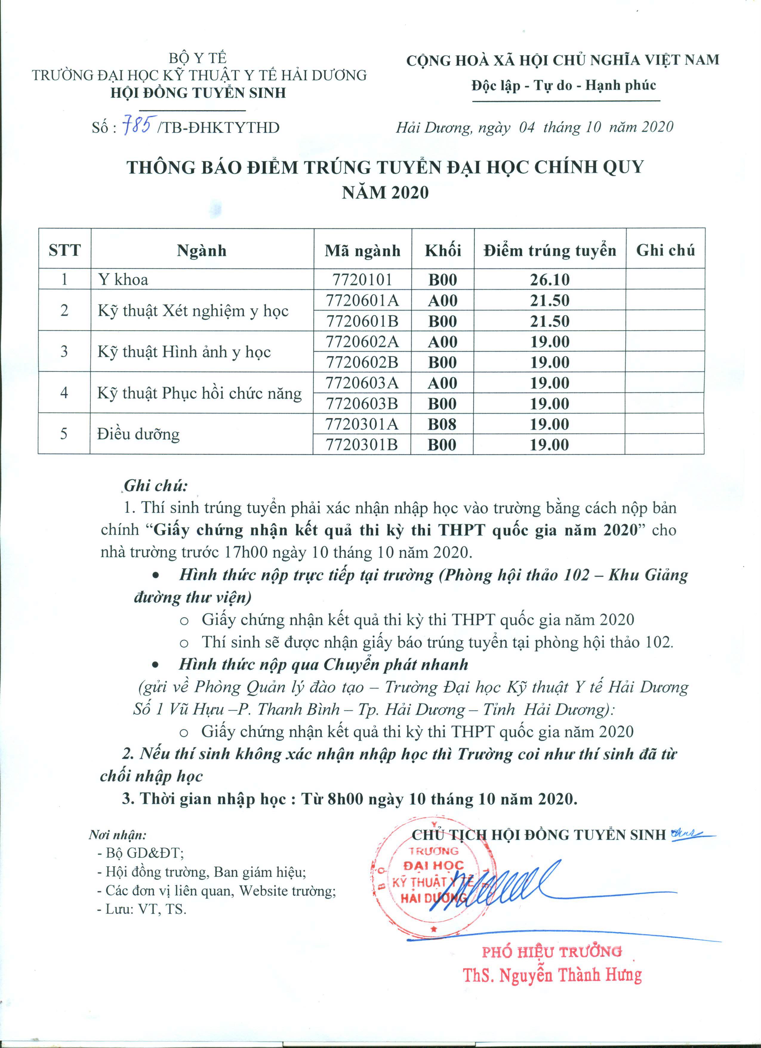 04/10/2020 03:52:28 PM | Tin mới: Thông báo điểm trúng tuyển Đại học Chính quy Năm 2025 (Số 626/TB-ĐHKTYTHD ngày 22/8/2025) 22/08/2025 10:12' PM