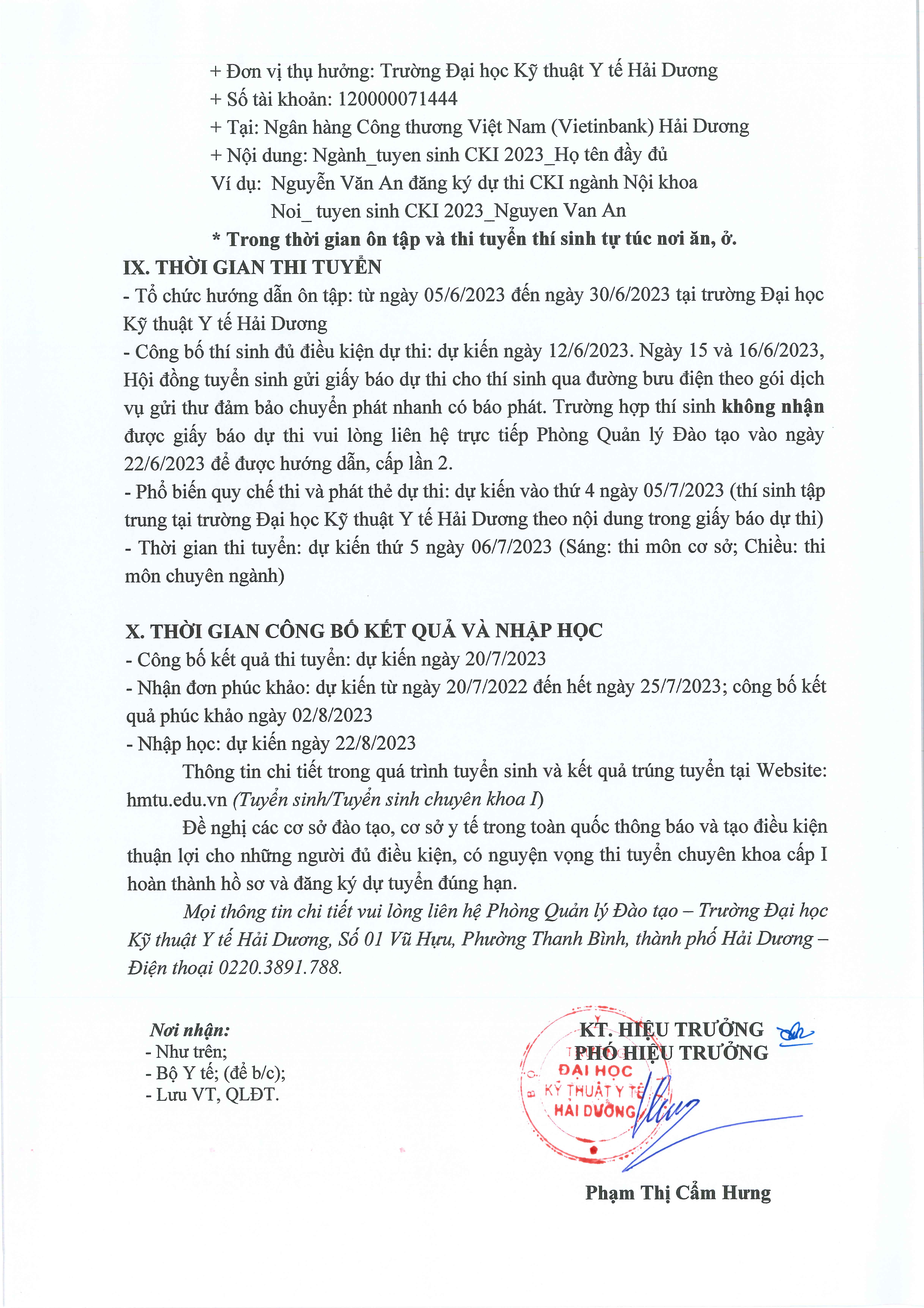 Thông báo tuyển sinh chuyên khoa I năm 2022 29/07/2022 07:58' AM