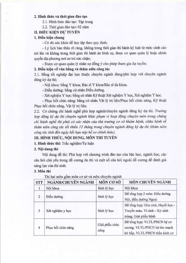 Thông báo tuyển sinh chuyên khoa I năm 2022 29/07/2022 07:58' AM