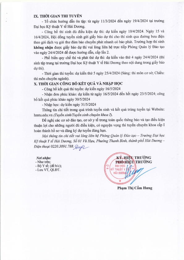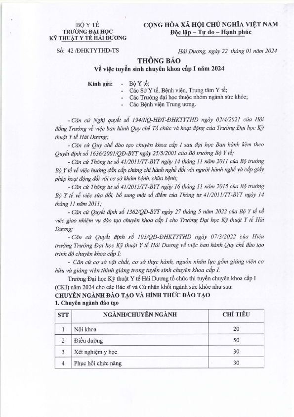 Thông báo tuyển sinh | Thông báo Tuyển sinh chuyên khoa I năm 2024 Số lượt đọc: