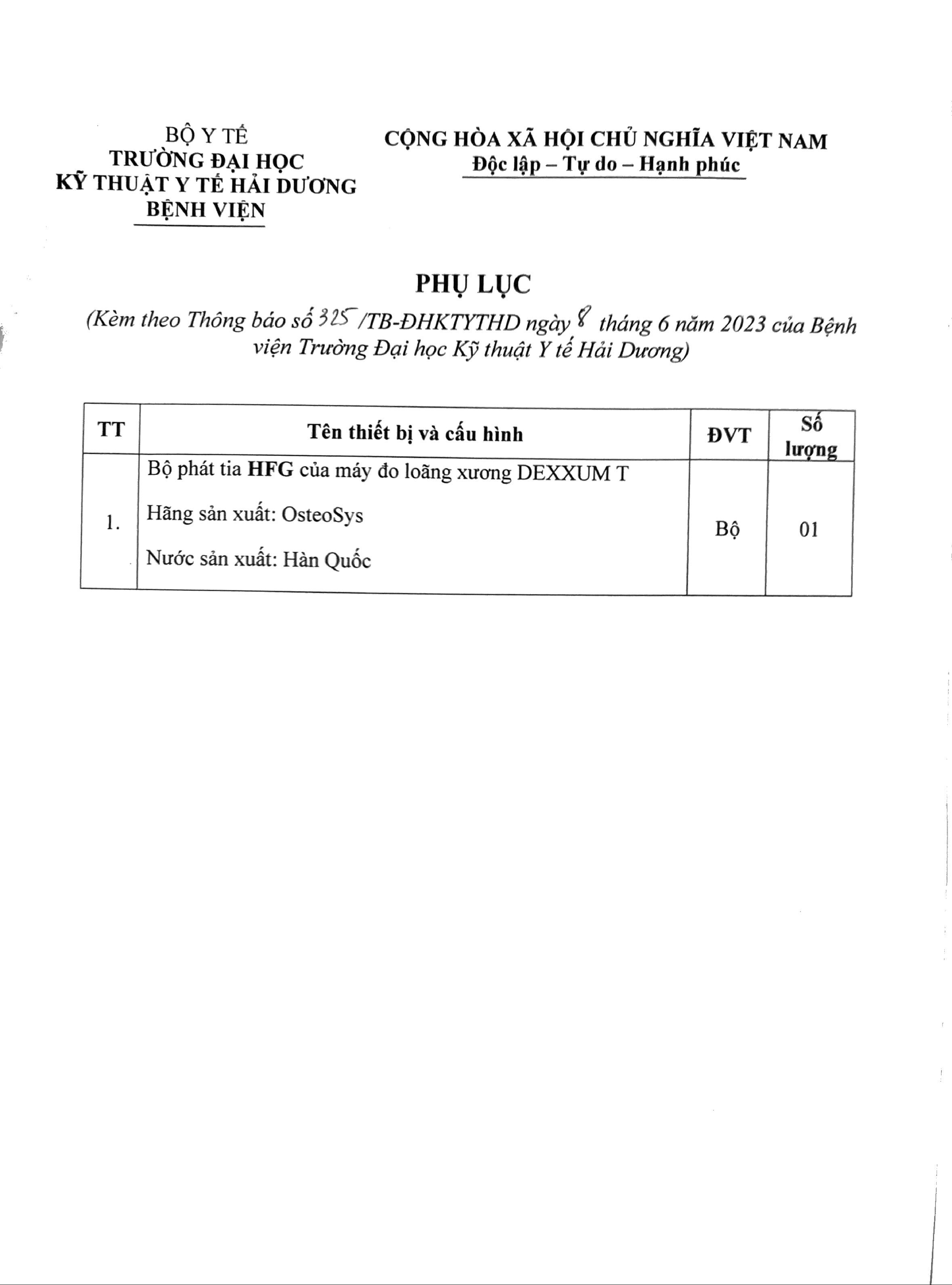 Thông báo chào báo giá sửa chữa máy đo loãng xương DEXXUM T 23/05/2023 03:33' PM