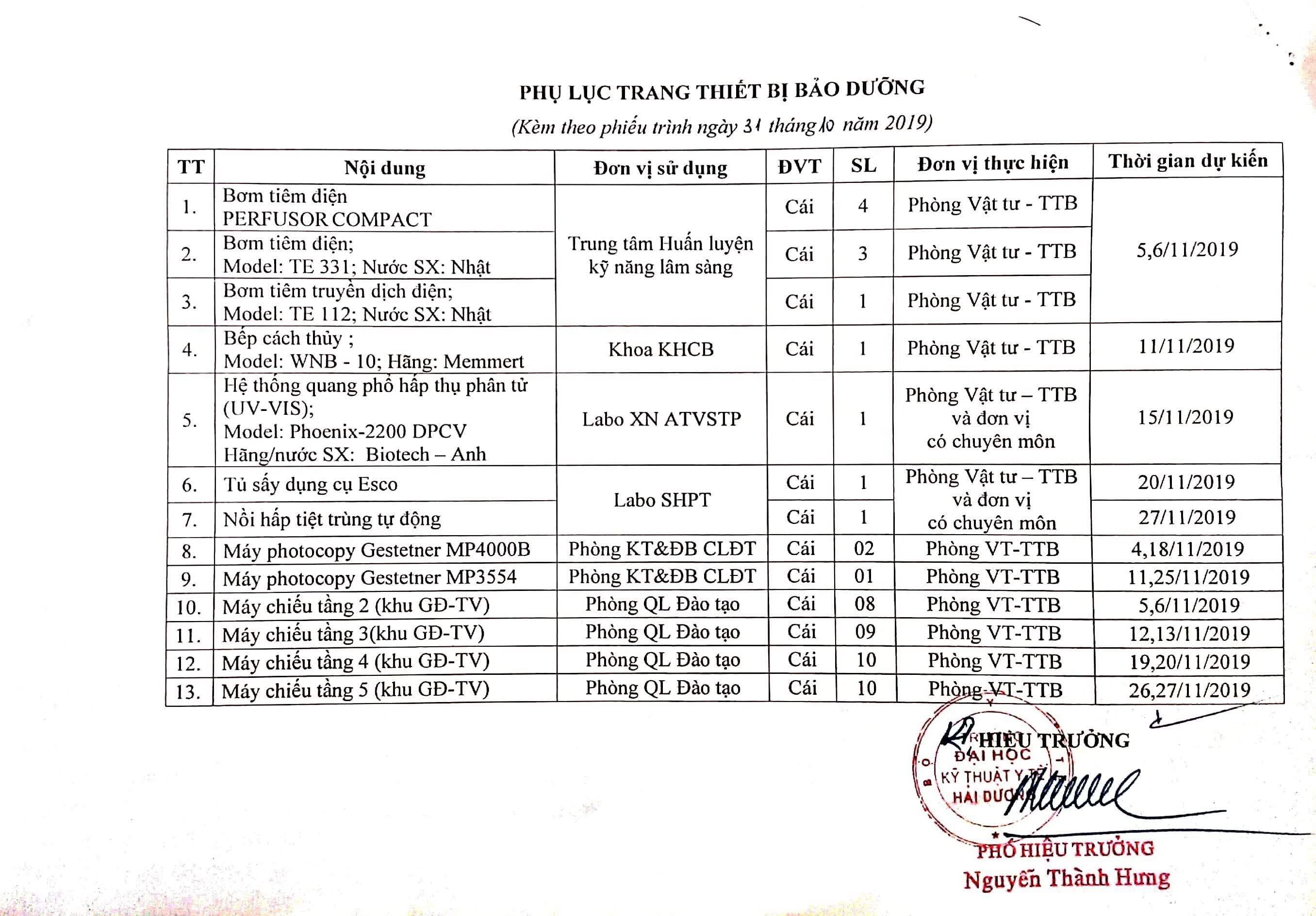 Thông báo Kế hoạch bảo dưỡng Trang thiết bị tháng 11-2025 (Số 799/TB-ĐHKTYTHD ngày 03/11/2025) 06/11/2025 08:51' AM