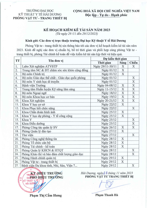 Thông báo | Kế hoạch Kiểm kê tài sản năm 2023 (Từ 29/11/2023-29/12/2023)
