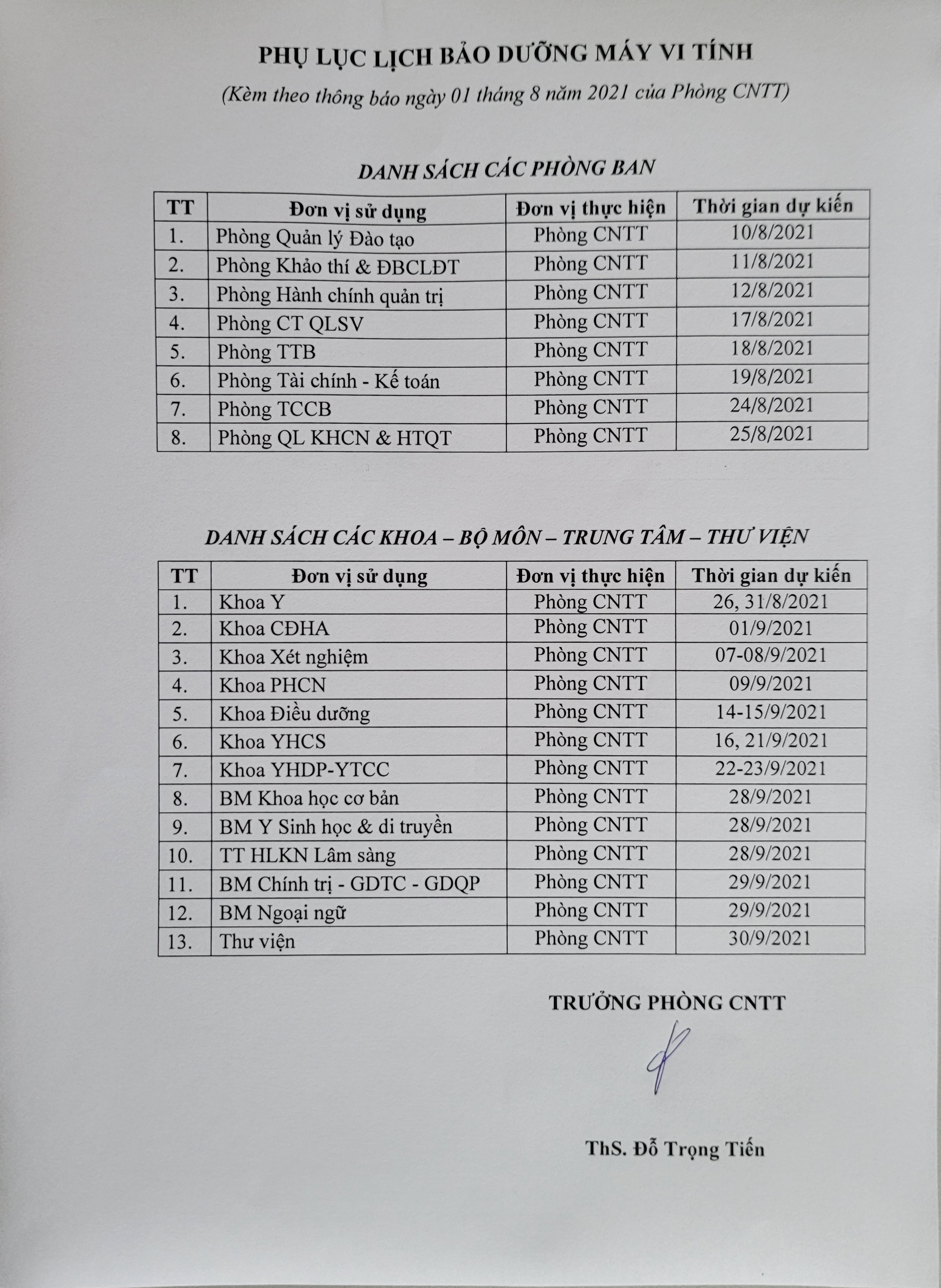 Thông báo Kế hoạch bảo dưỡng Trang thiết bị tháng 11-2025 (Số 799/TB-ĐHKTYTHD ngày 03/11/2025) 06/11/2025 08:51' AM