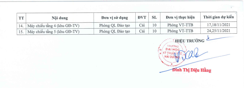 Thông báo Kế hoạch bảo dưỡng Trang thiết bị tháng 11-2025 (Số 799/TB-ĐHKTYTHD ngày 03/11/2025) 06/11/2025 08:51' AM