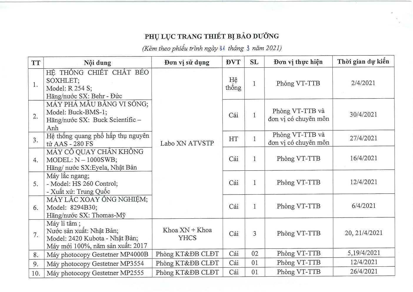 Kế hoạch bảo dưỡng trang thiết bị tháng 11/2020 05/11/2020 02:58' PM