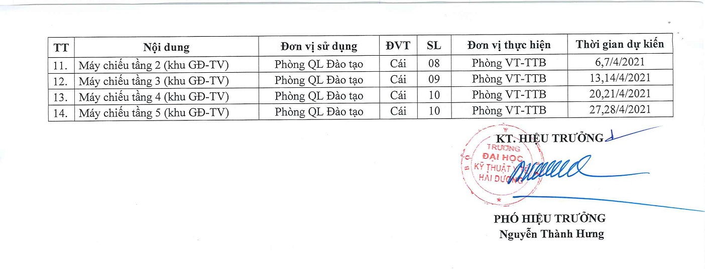 Thông báo | Kế hoạch bảo dưỡng trang thiết bị tháng 4/2021
