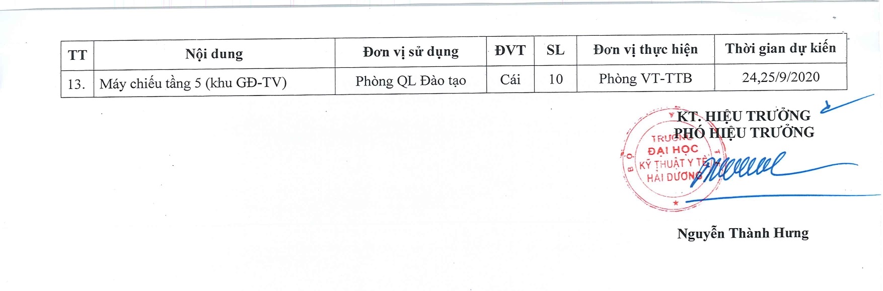 Thông báo Kế hoạch bảo dưỡng Trang thiết bị tháng 11-2025 (Số 799/TB-ĐHKTYTHD ngày 03/11/2025) 06/11/2025 08:51' AM