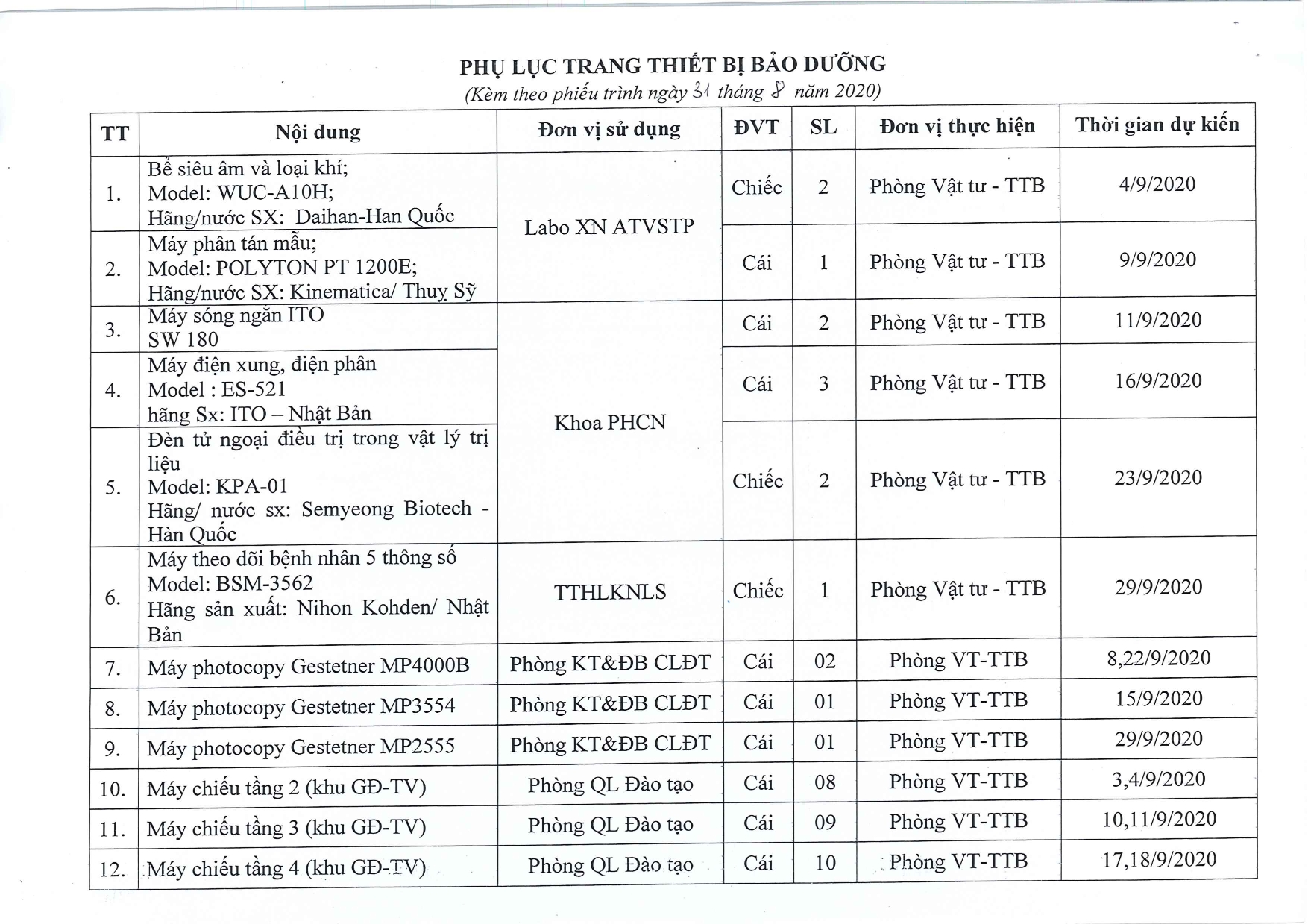Kế hoạch bảo dưỡng trang thiết bị tháng 7/2020 03/07/2020 08:16' AM